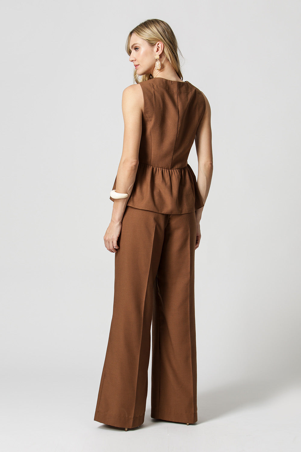 Blusa bata em poli linho com modelagem peplum, decote V e botões funcionais na frente. Leve, versátil e com toque natural perfeita para compor looks elegantes do dia a dia.