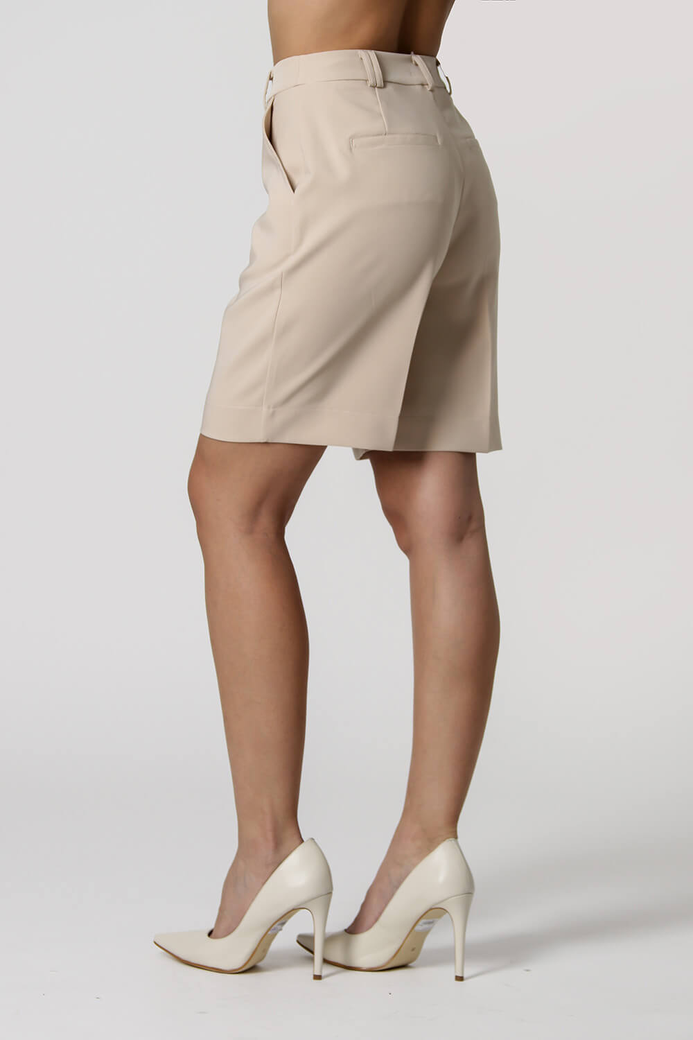 Bermudas con botón forrado en el propio tejido. Pieza confeccionada en tejido de sastrería. Un modelo clásico y elegante, perfecto para looks de trabajo.