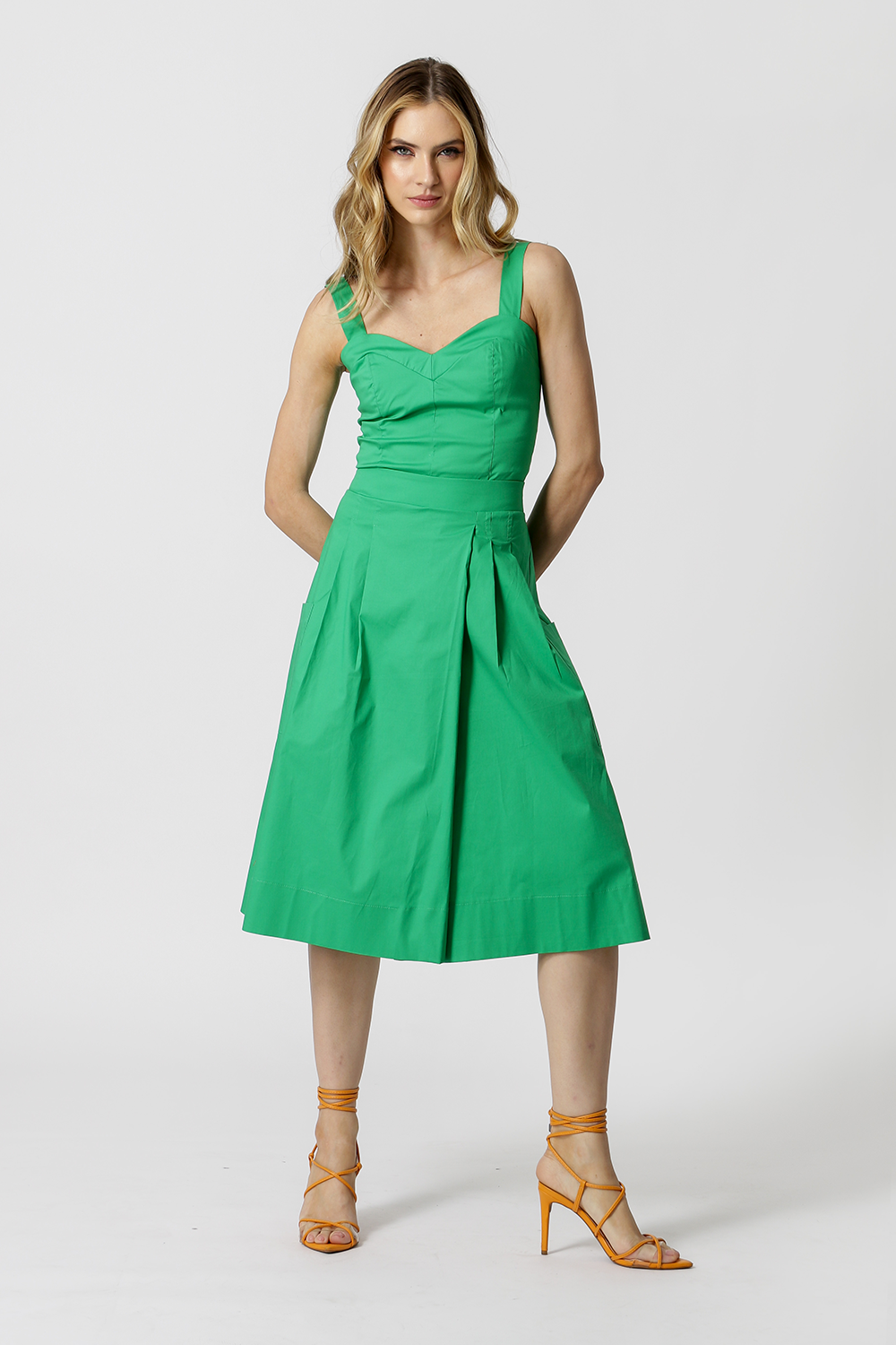 Bermudas con falda y elástico en la espalda. Fabricado en tejido tricolina. Un modelo distintivo, elegante y súper cómodo para un ambiente casual.