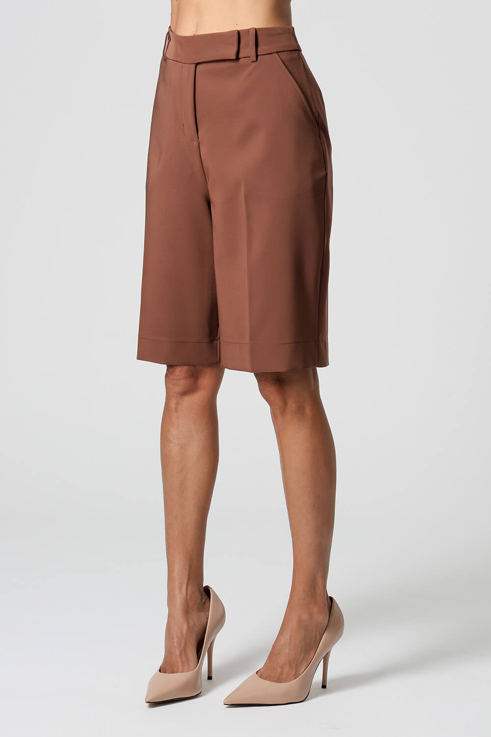 Bermuda Jorts com design clean e sofisticado, oferece caimento perfeito e conforto, sendo ideal para looks elegantes e versáteis, tanto casuais quanto formais.