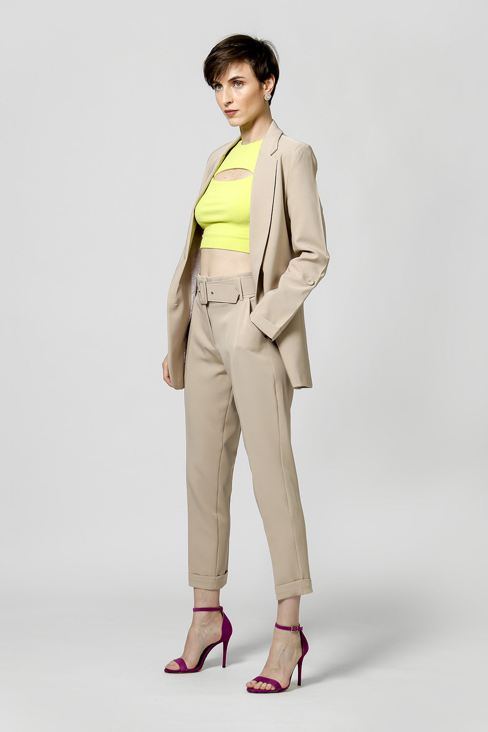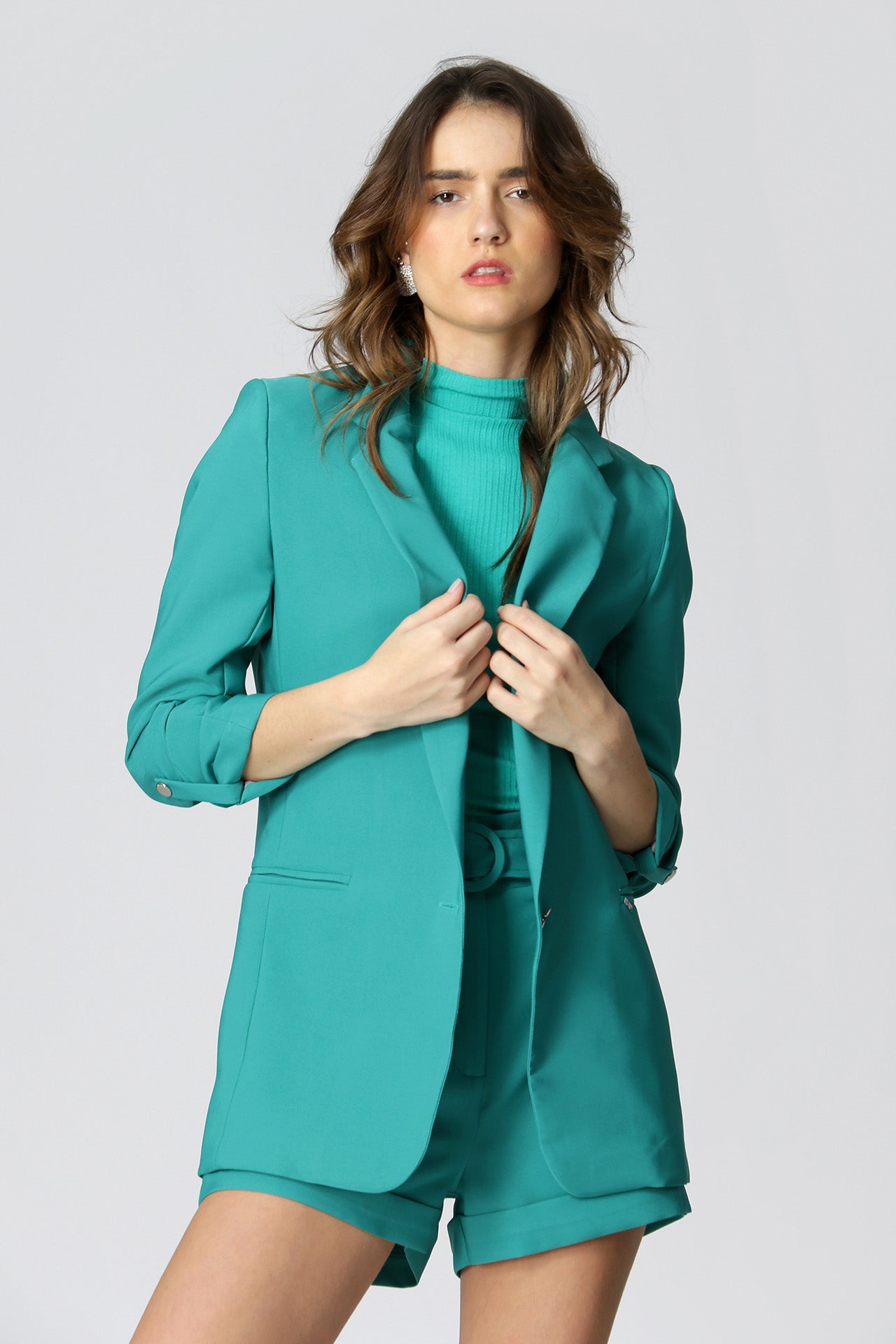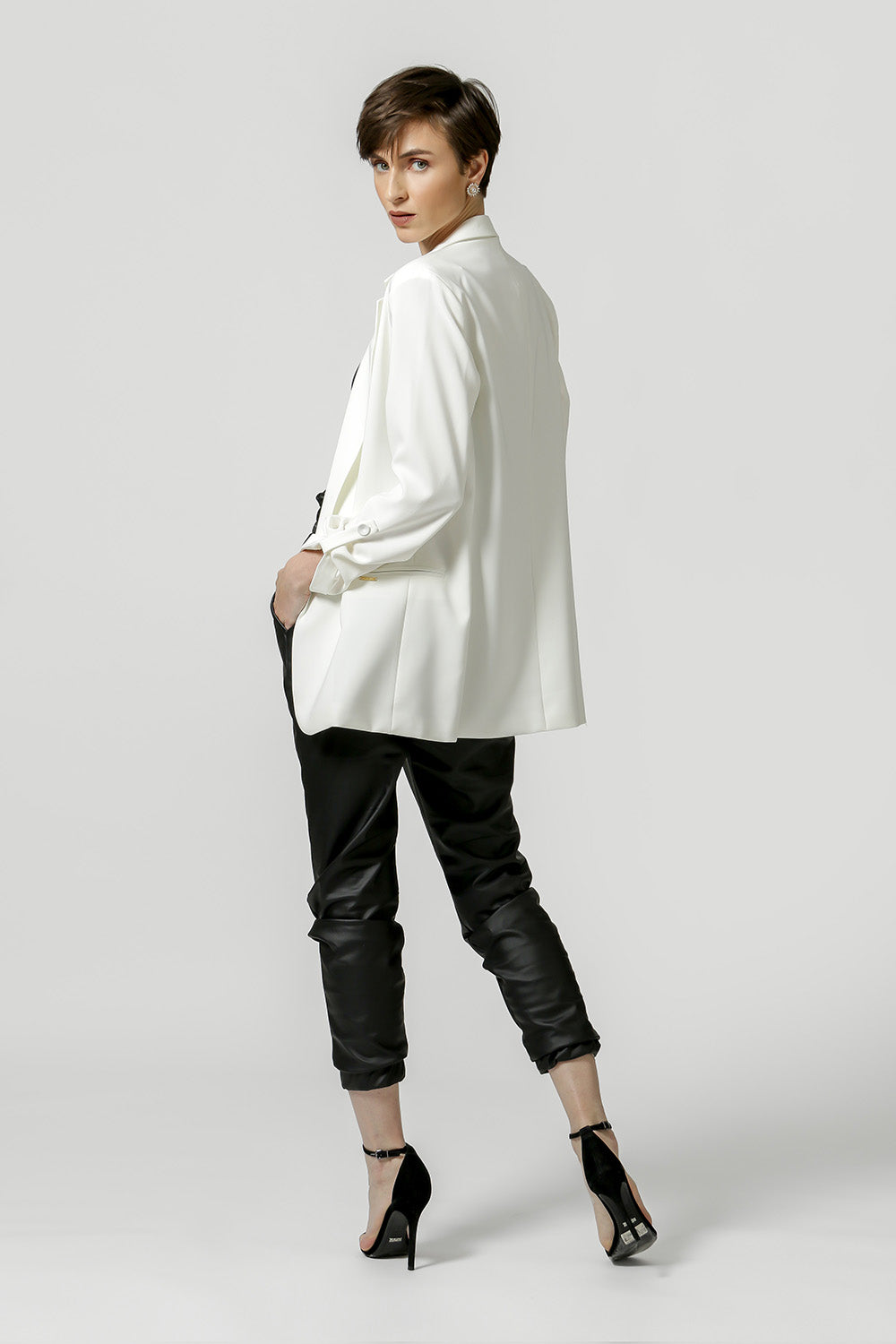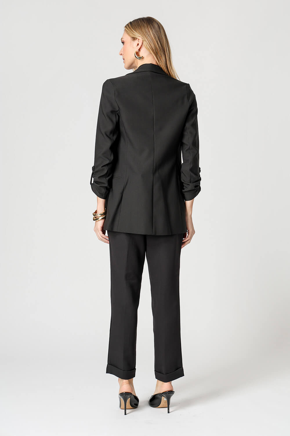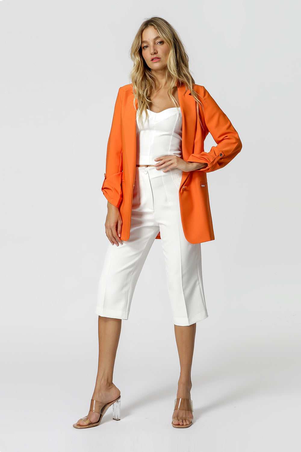 Blazer de alfaitaria com shape longline, com detalhe de martingale e com forro estampado.