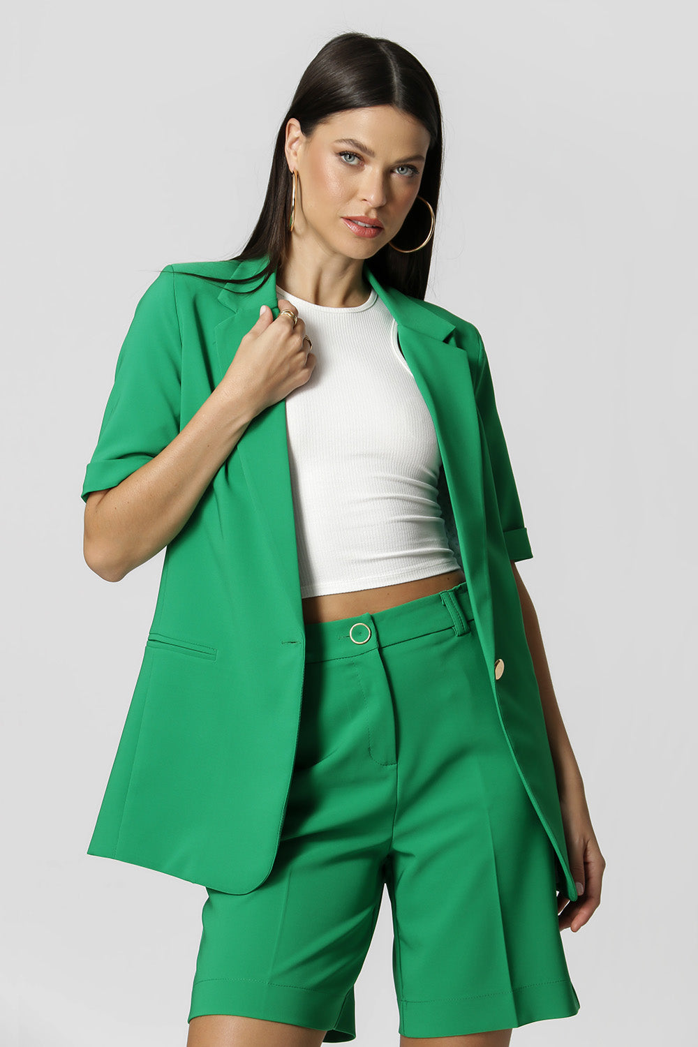 Blazer con manga midi y botón metálico. Realizado en tejido de sastrería. Una pieza única y versátil que aporta un estilo perfecto al ambiente laboral.