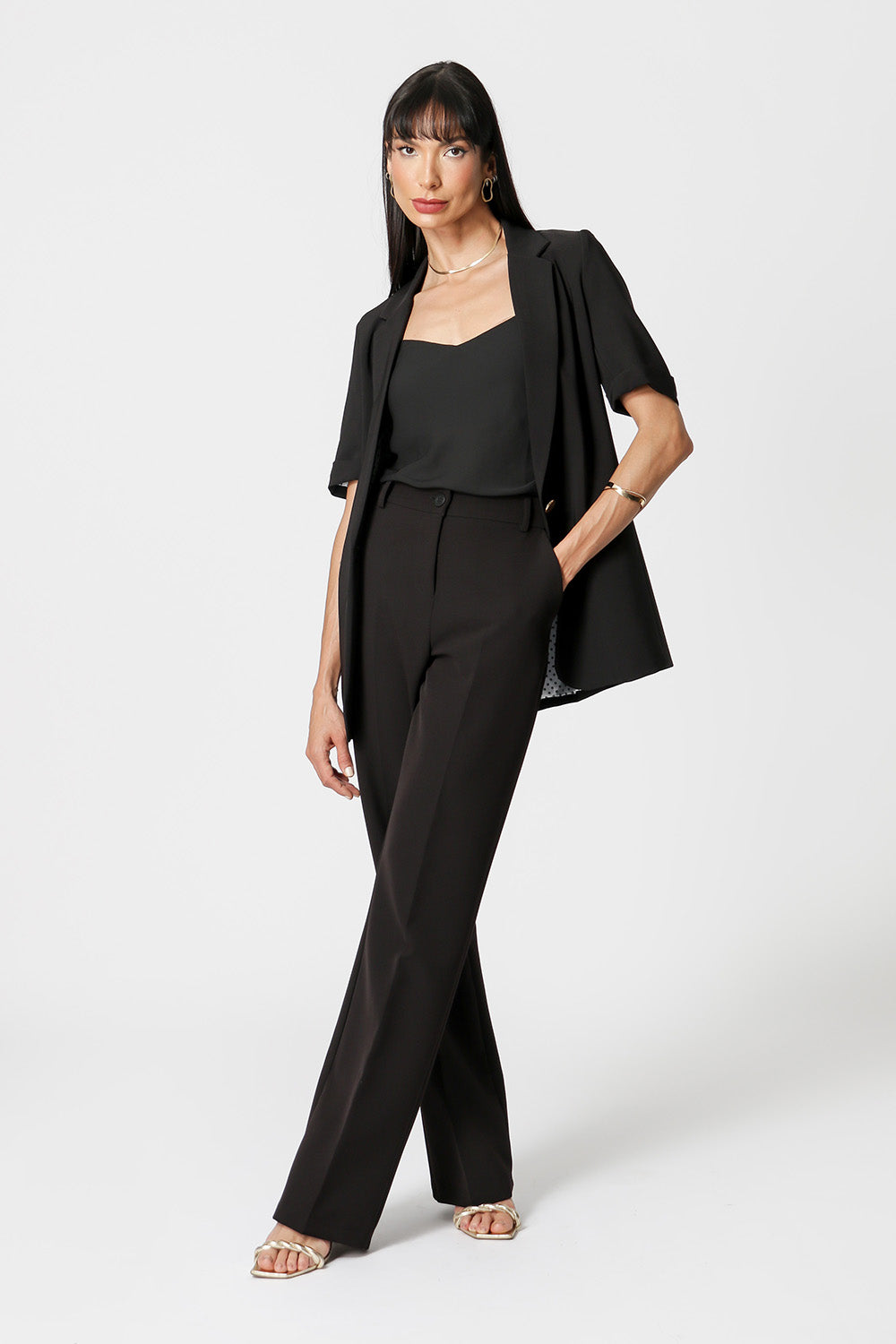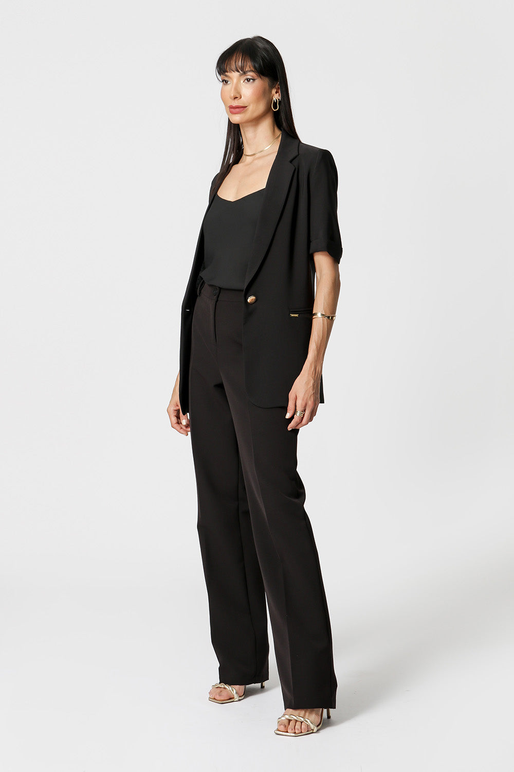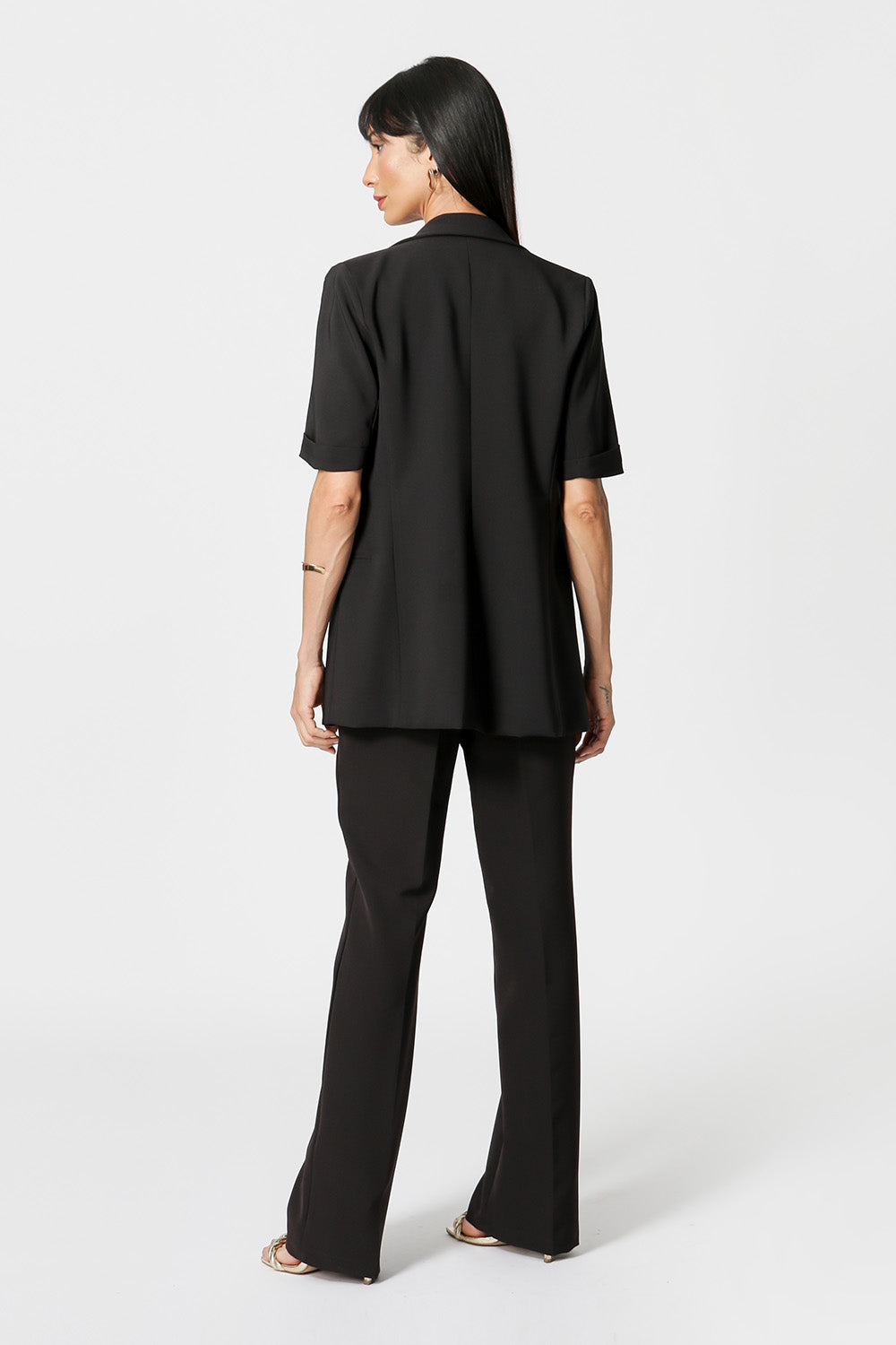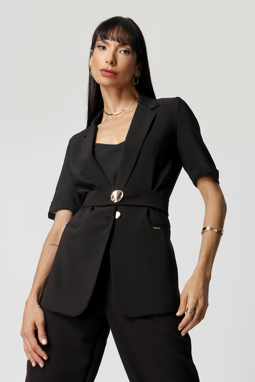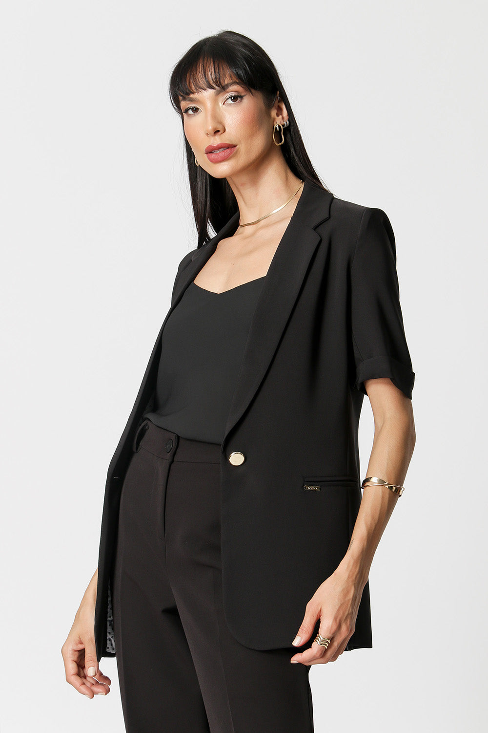 Blazer con manga midi y botón metálico. Realizado en tejido de sastrería. Una pieza única y versátil que aporta un estilo perfecto al ambiente laboral.