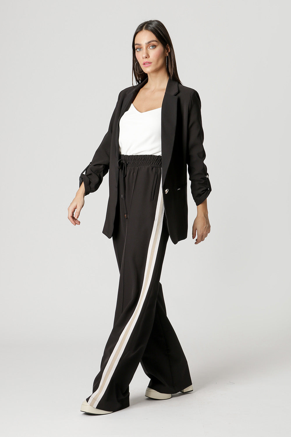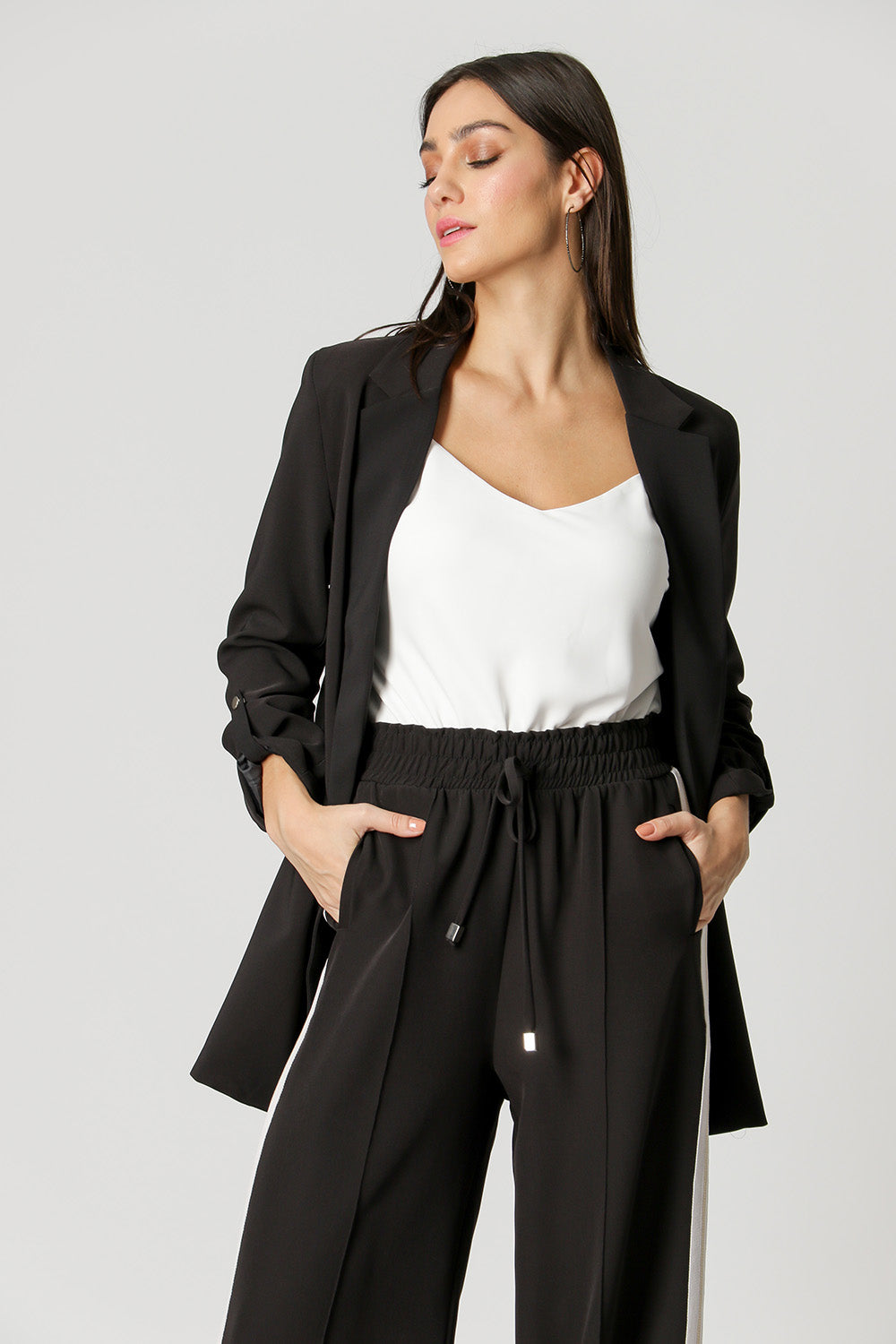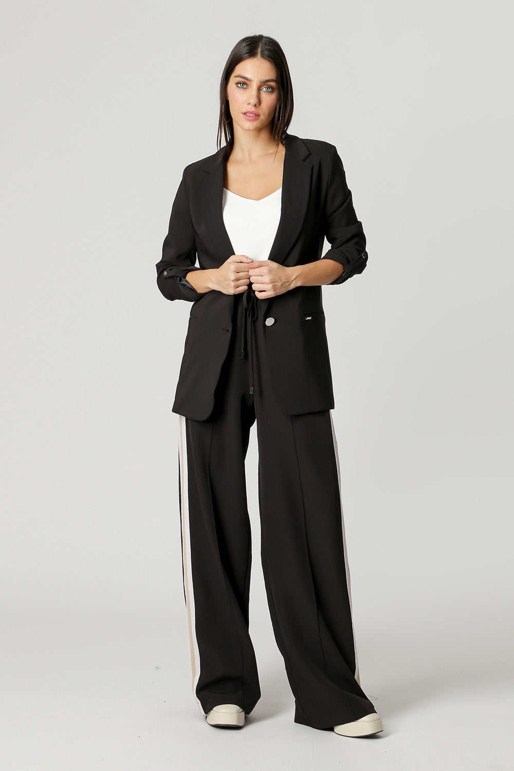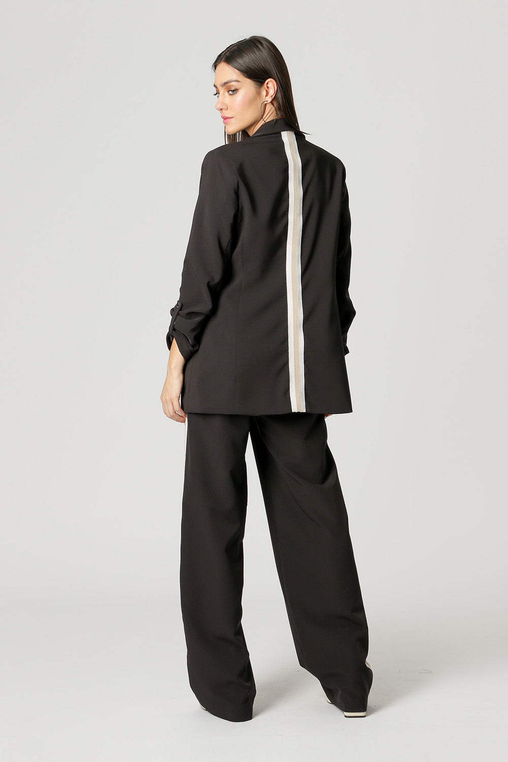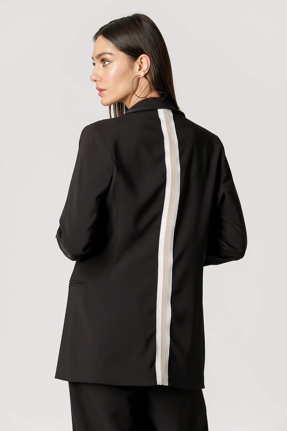 Blazer largo con martingala en las mangas y detalle recto en la espalda. Los conceptos básicos diferenciados que necesitas tener.