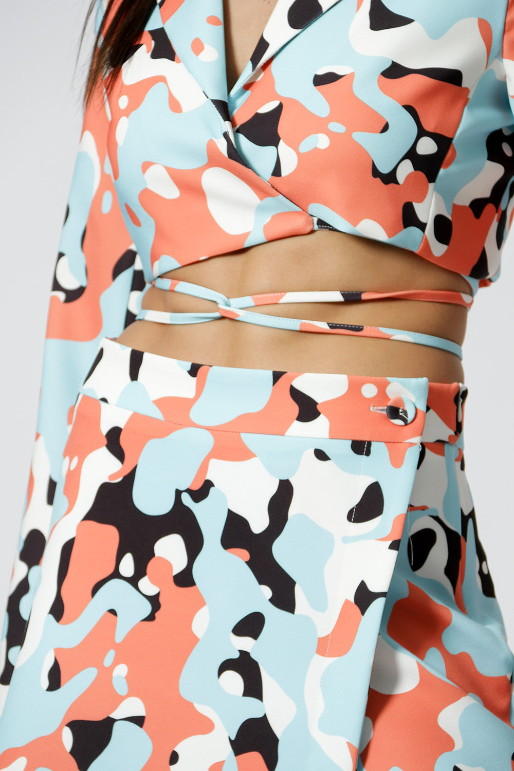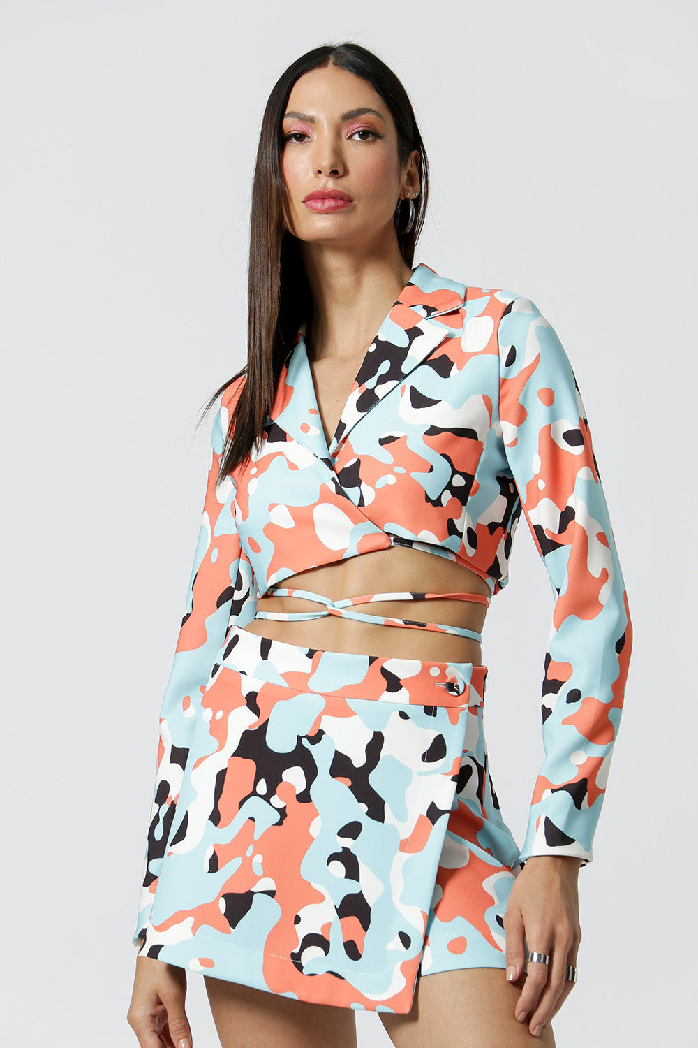 Blazer con diseño cropped, cierre frontal en el bajo con tira y forro liso. Pieza sastre estampada súper casual, ¡ideal para un look poderoso!