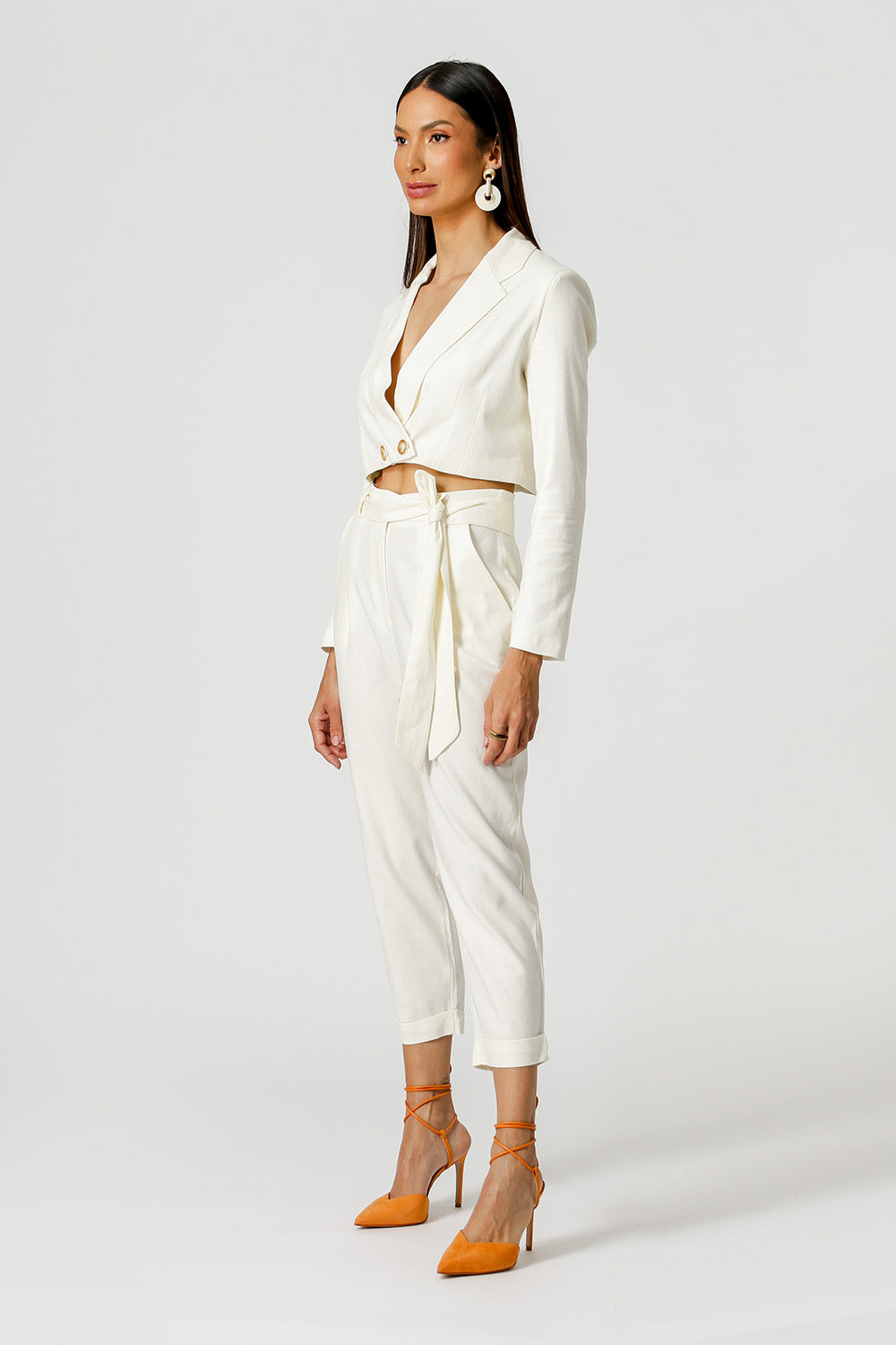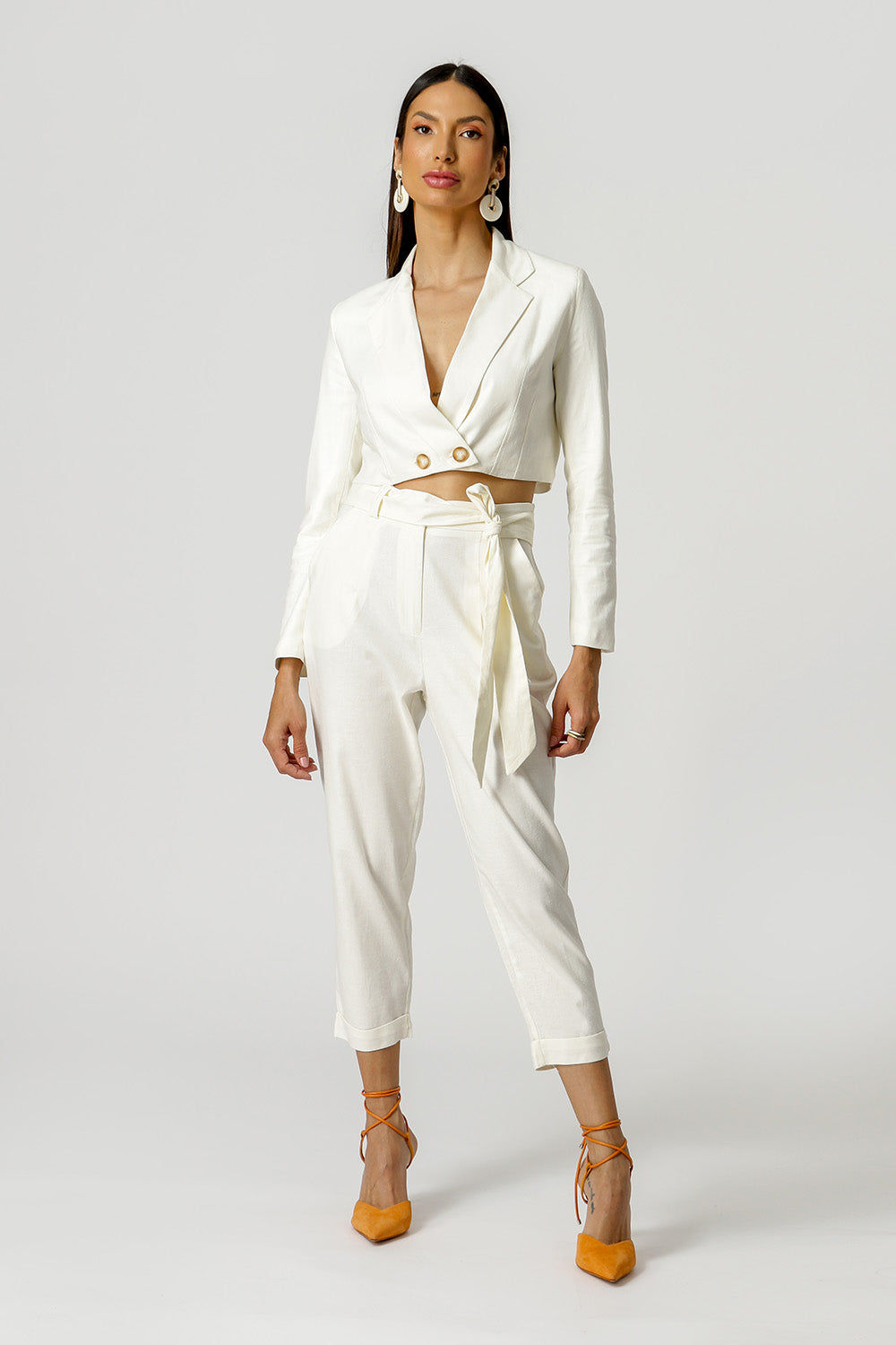 Blazer de lino corto con botones bonitos y distintivos. Una pieza confeccionada en lino viscosa, de forma moderna, que moderniza varios looks.