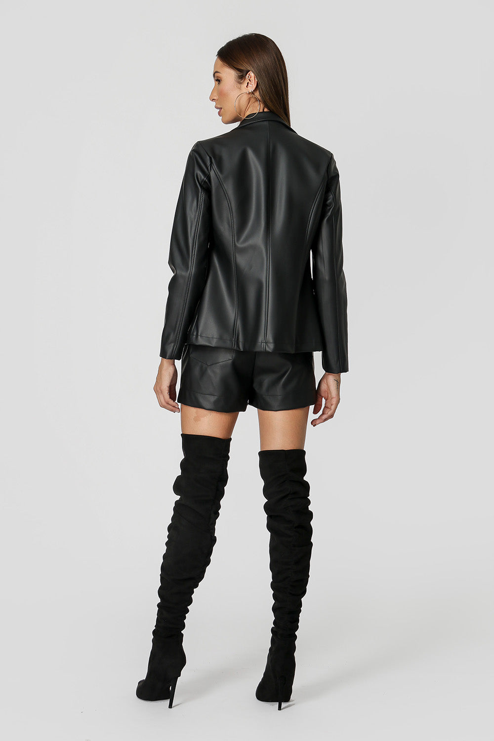 Blazer entallado confeccionado en piel sintética. Tiene un forro liso y un detalle de bolsillo aplicado. Una pieza clave, ideal para looks atemporales.