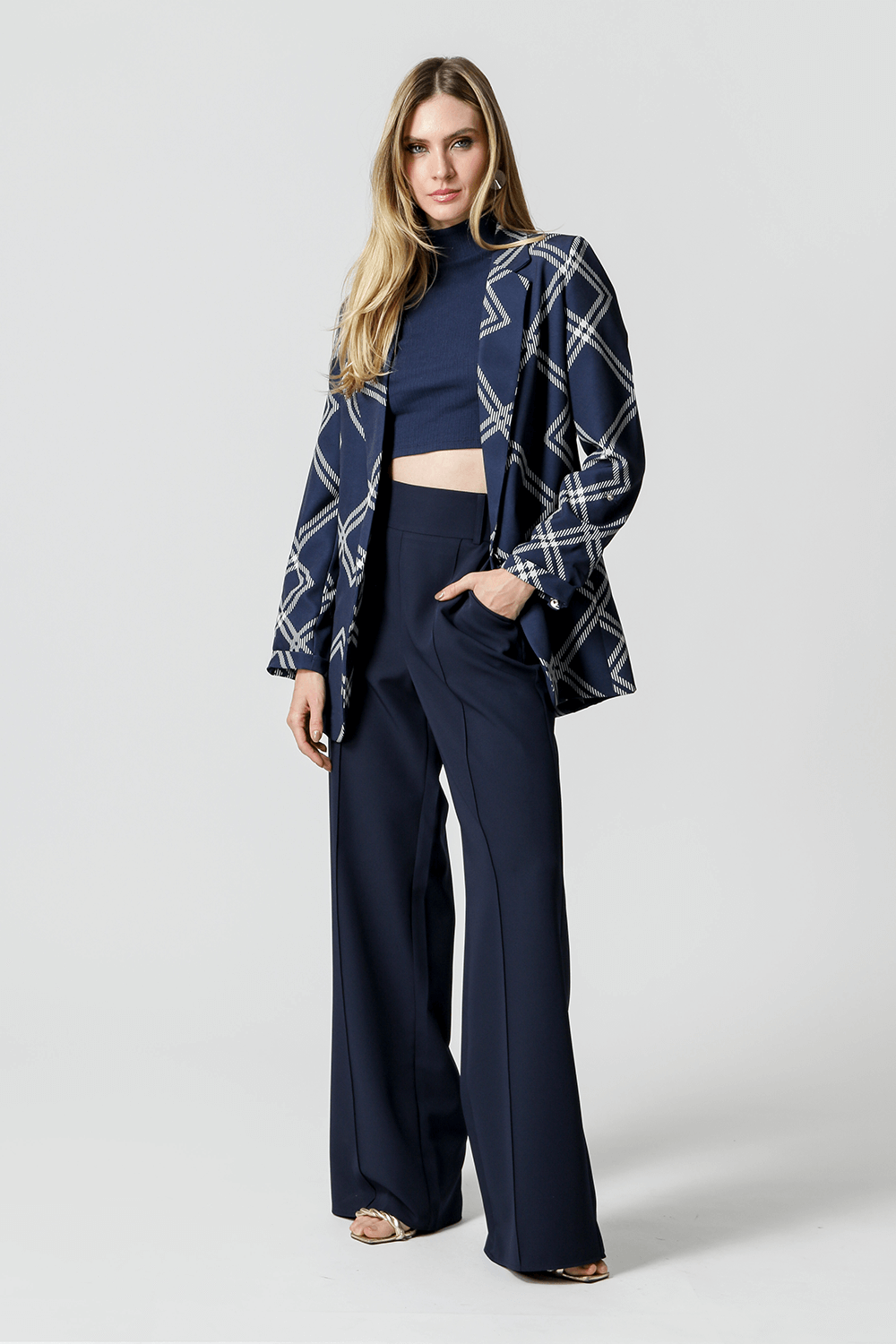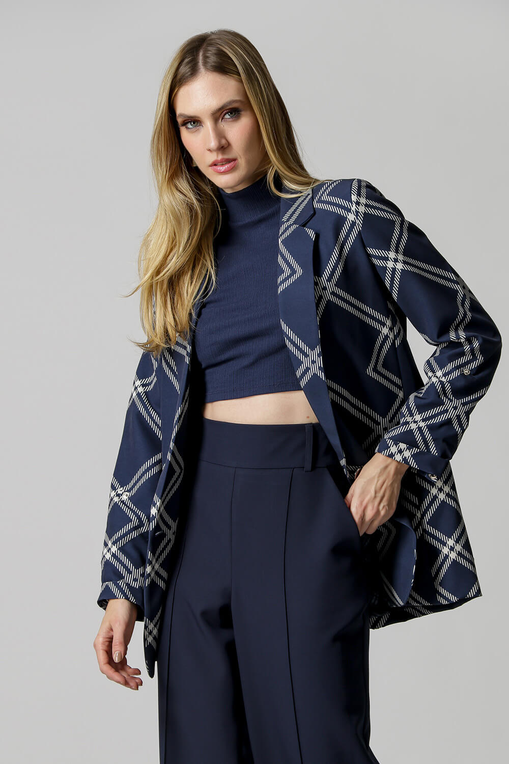 Blazer largo entallado - AZUL MARINO 5019