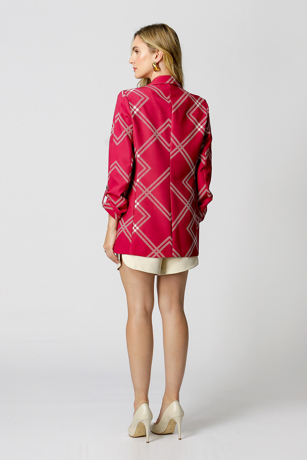 Blazer de corte largo, con martingala en la manga y forro liso. Pieza de corte y ajuste entallado cuenta con hermosas opciones de estampados exclusivos.