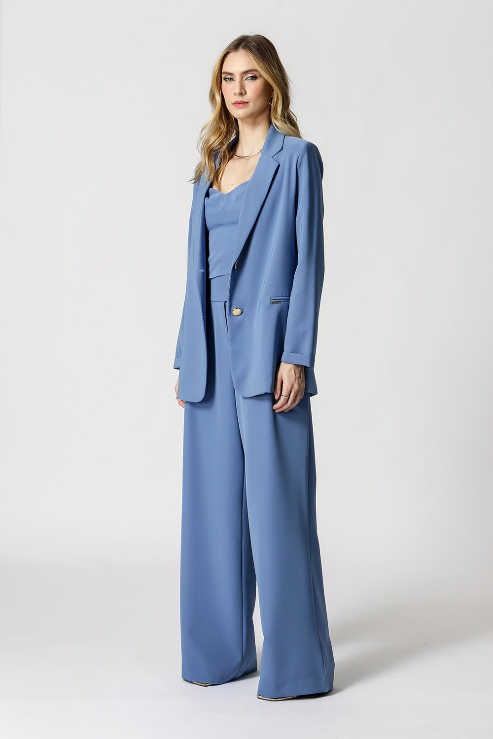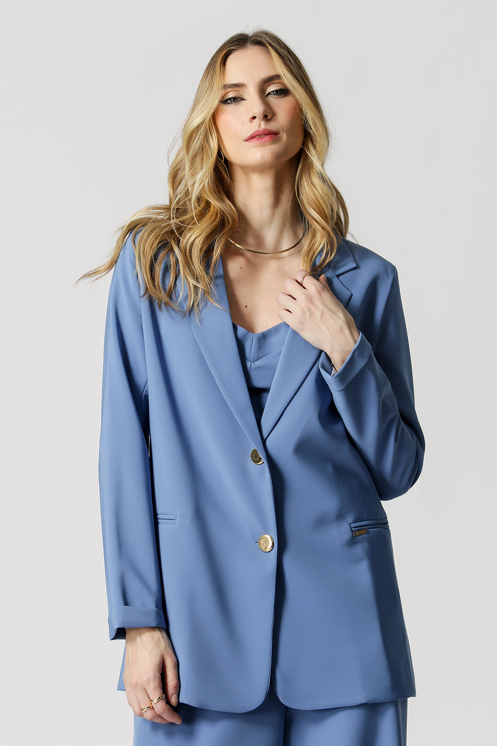 Blazer largo de una pieza con doble botonadura y forro de satén. Pieza confeccionada en tejido sastre. Una pieza elegante que no puede faltar en tu armario y perfecta para crear looks de trabajo.