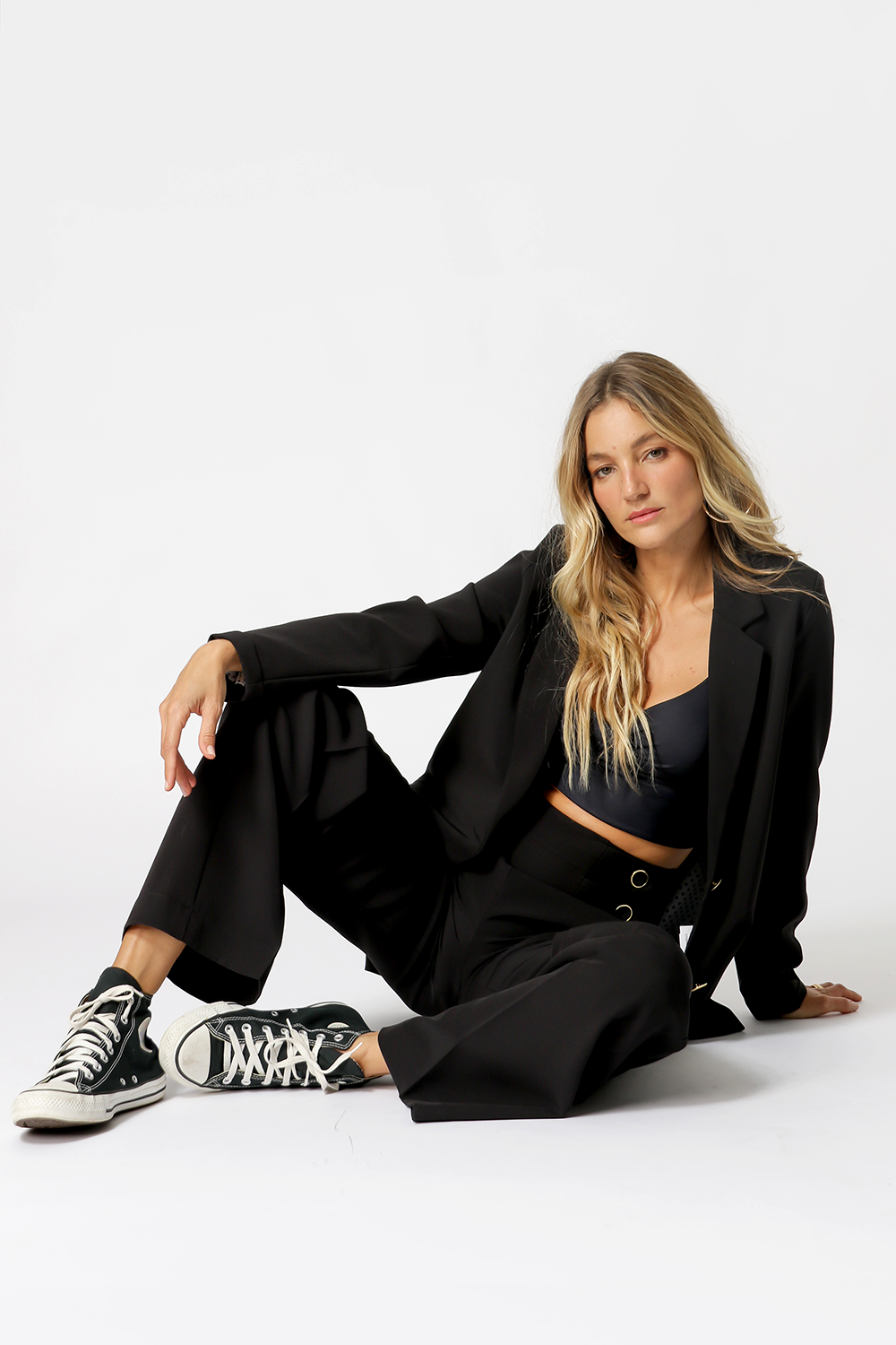 Blazer largo de una pieza con doble botonadura y forro de satén. Pieza confeccionada en tejido sastre. Una pieza elegante que no puede faltar en tu armario y perfecta para crear looks de trabajo.