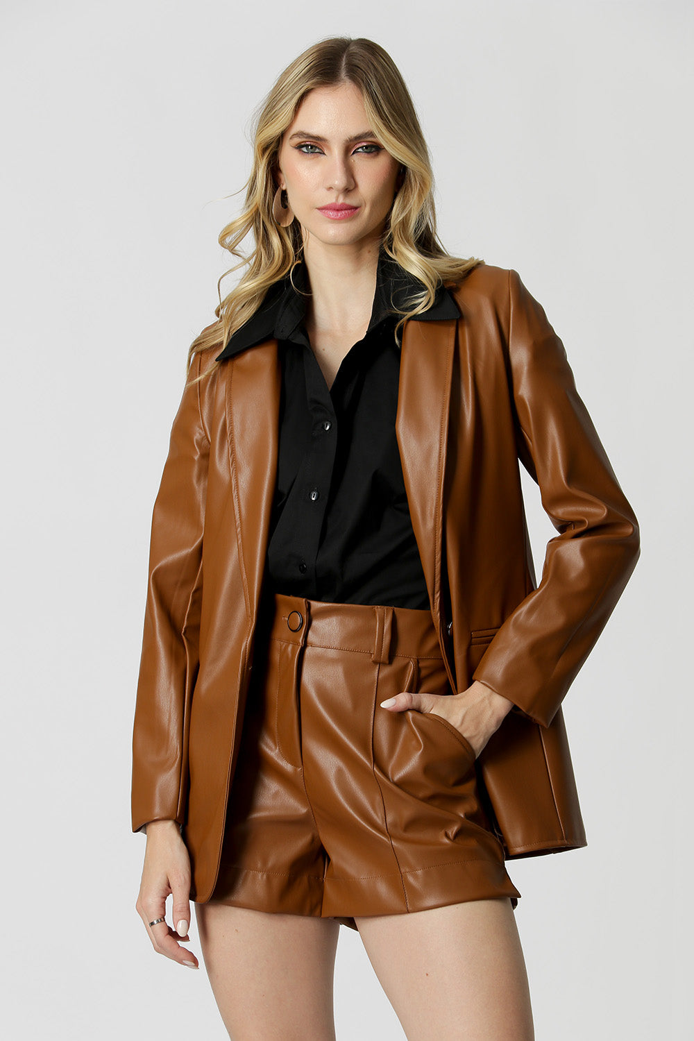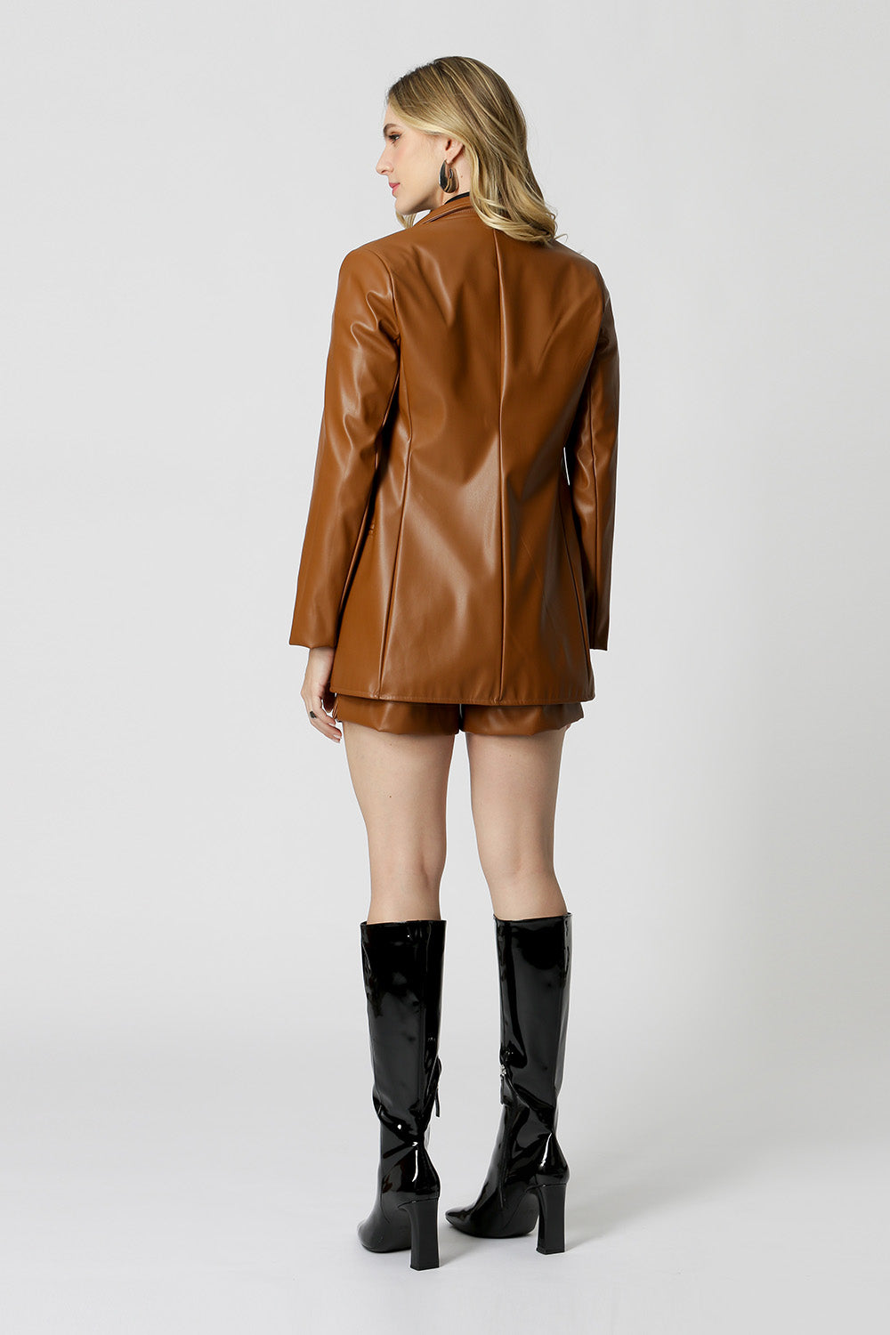 Blazer largo con detalle de botones y aros forrados en el mismo tejido. Un modelo fabricado en tela de piel sintética. Una pieza perfecta para añadir un toque de sofisticación y estilo a tus looks y que combina con muchísimas piezas diferentes, ¡anímate!
