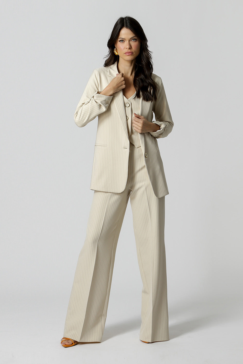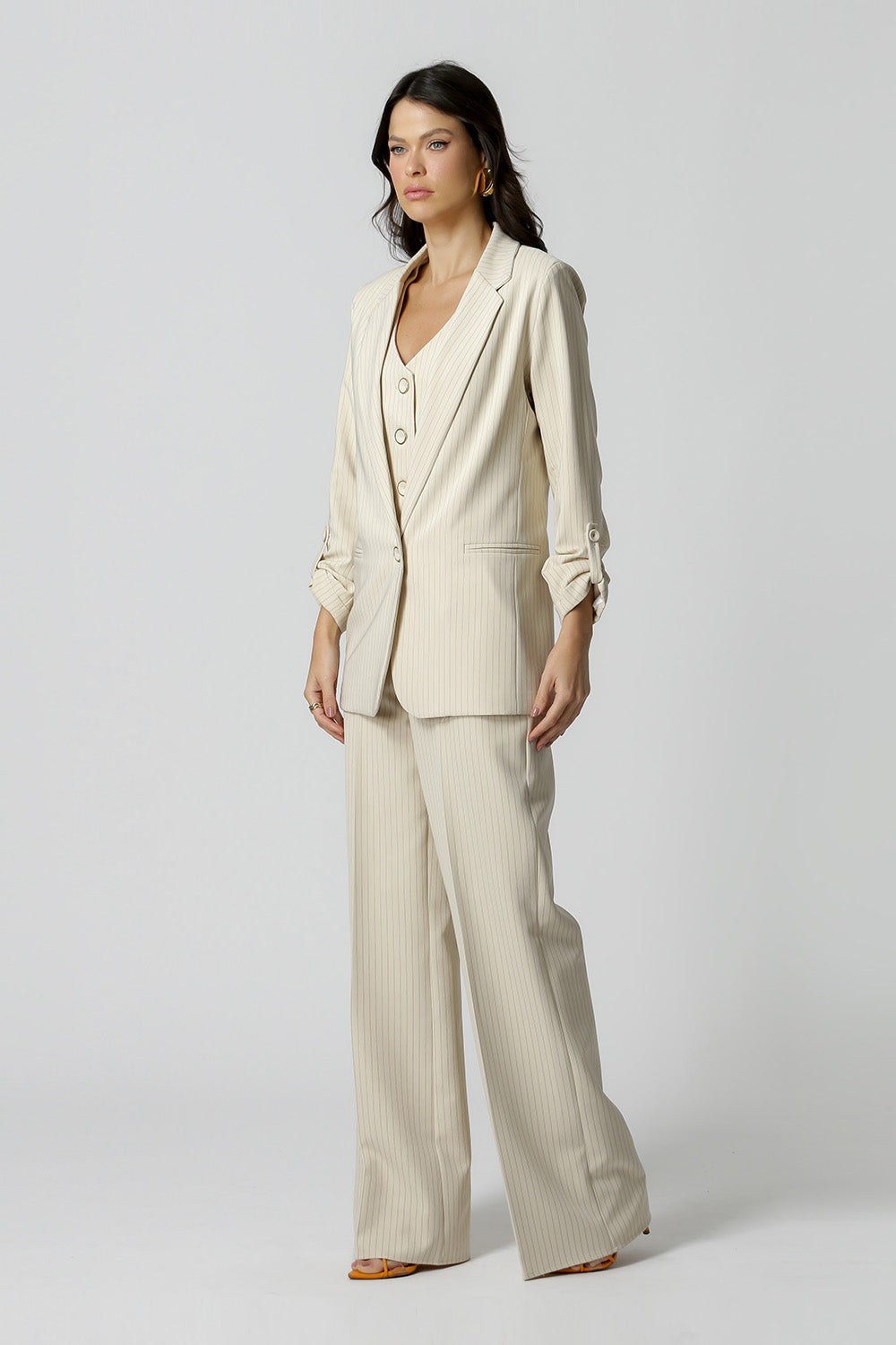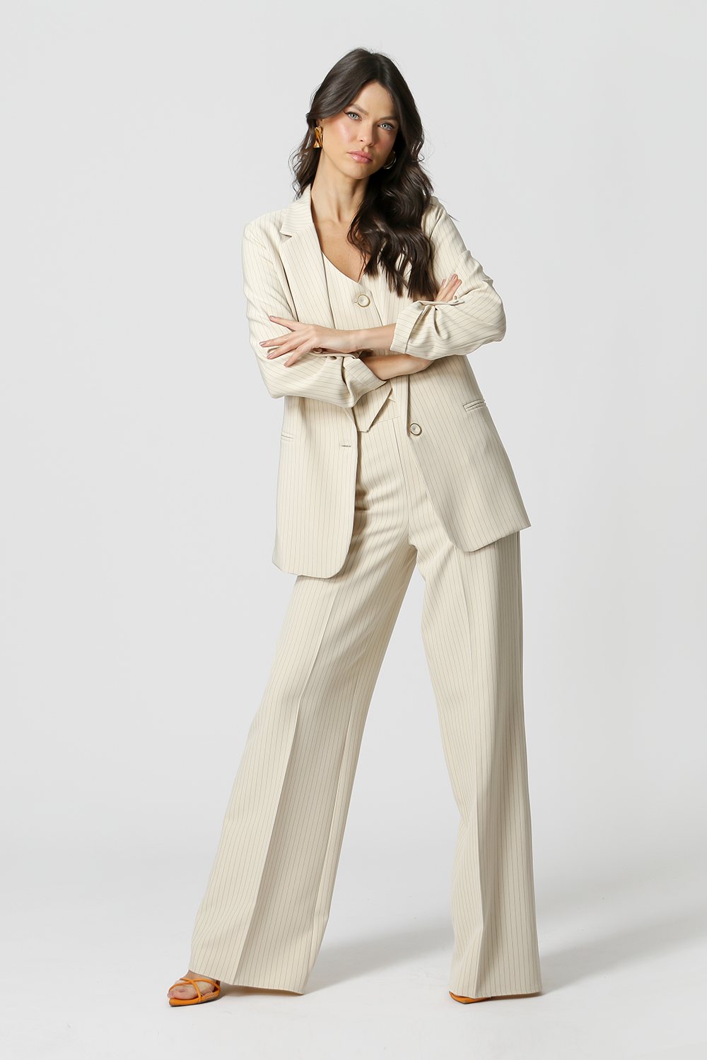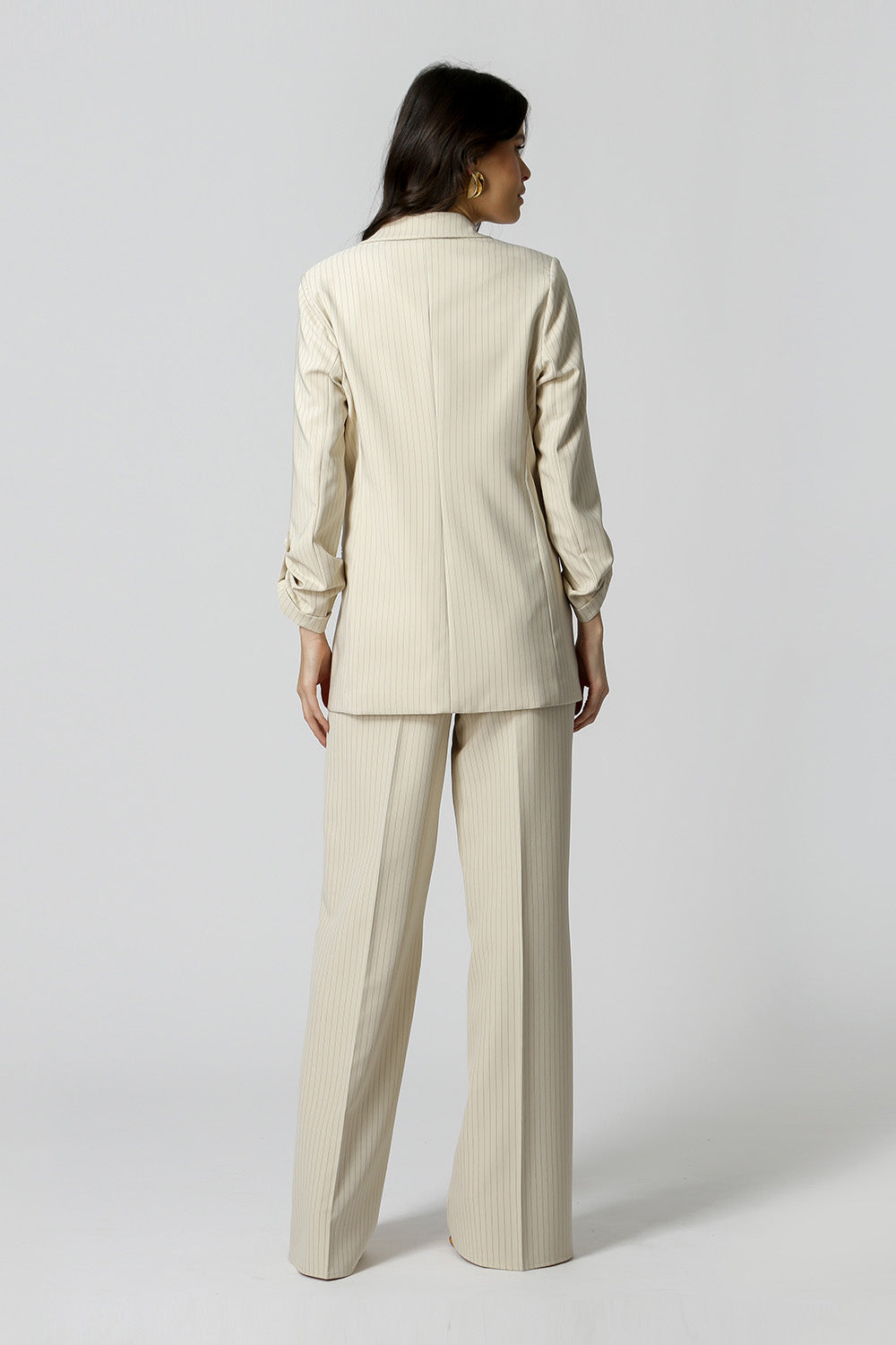 Blazer largo estampado y forrado. Fabricado en tejido a medida y tiene botones cubiertos por el propio tejido. Una pieza elegante perfecta para looks de trabajo.
