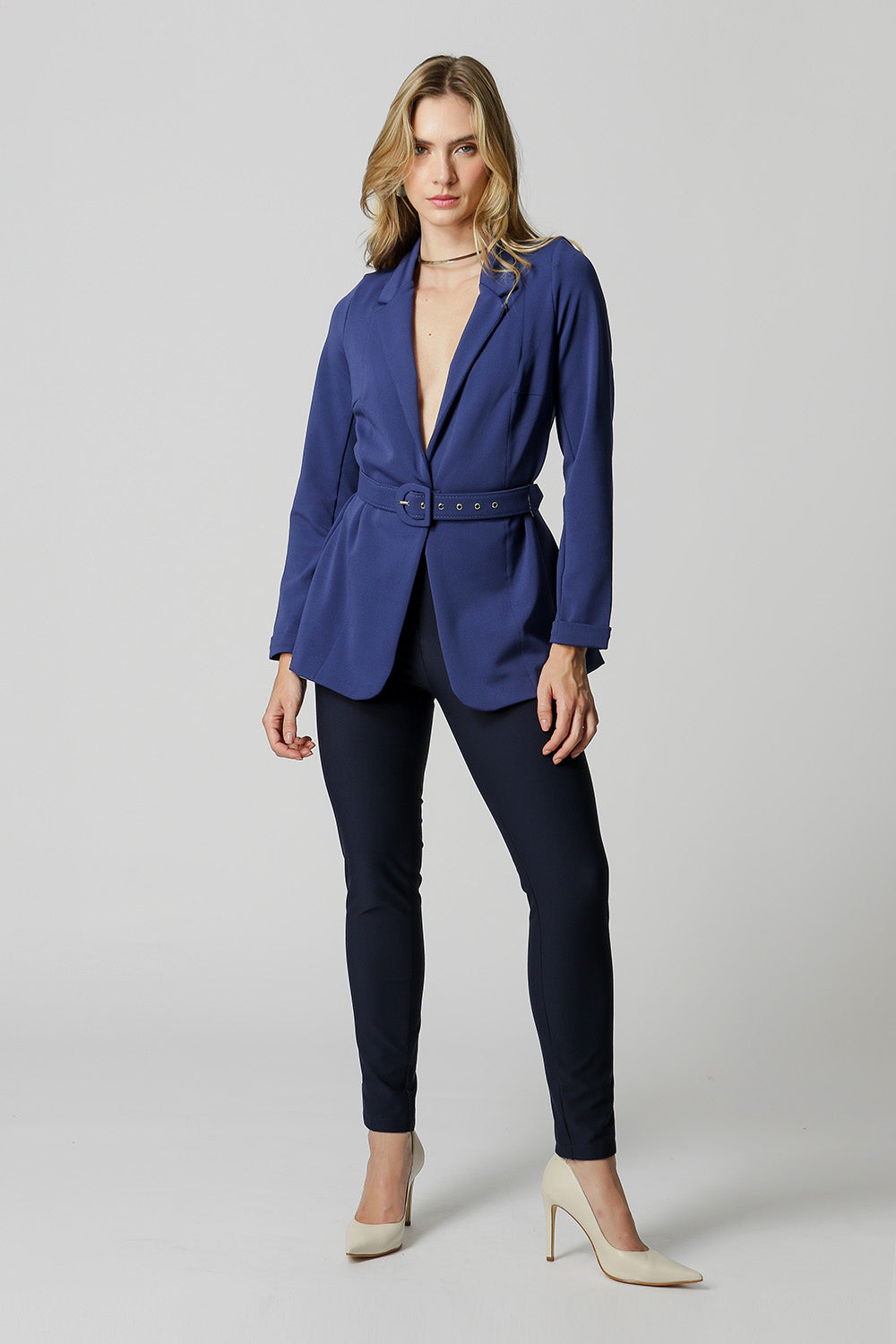 Blazer con Hombreras y Cinturón - AZUL MARINO 8