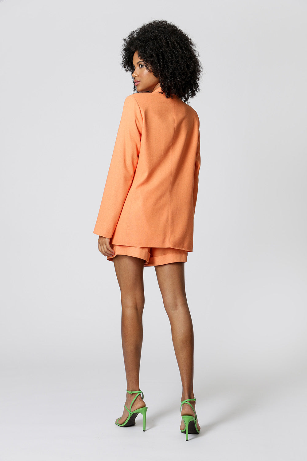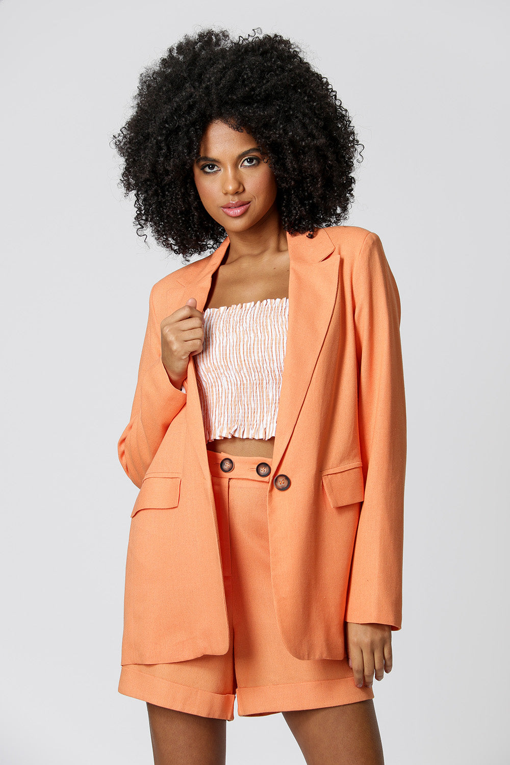 Blazer de lino de corte holgado, solapa y detalle de forro estampado. Una pieza imprescindible para tu armario.