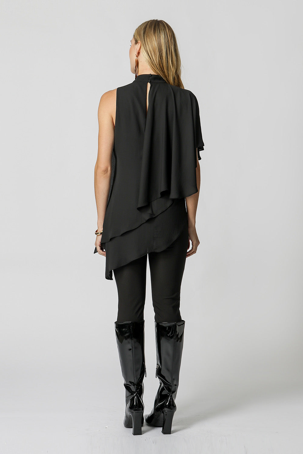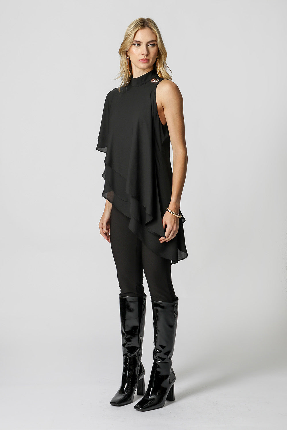 Blusa asimétrica de 3 capas de crepe fluido que se puede llevar de diferentes maneras. Tiene diferentes detalles de botones. ¡Una pieza elegante llena de detalles!