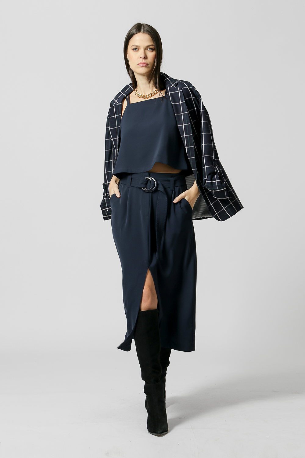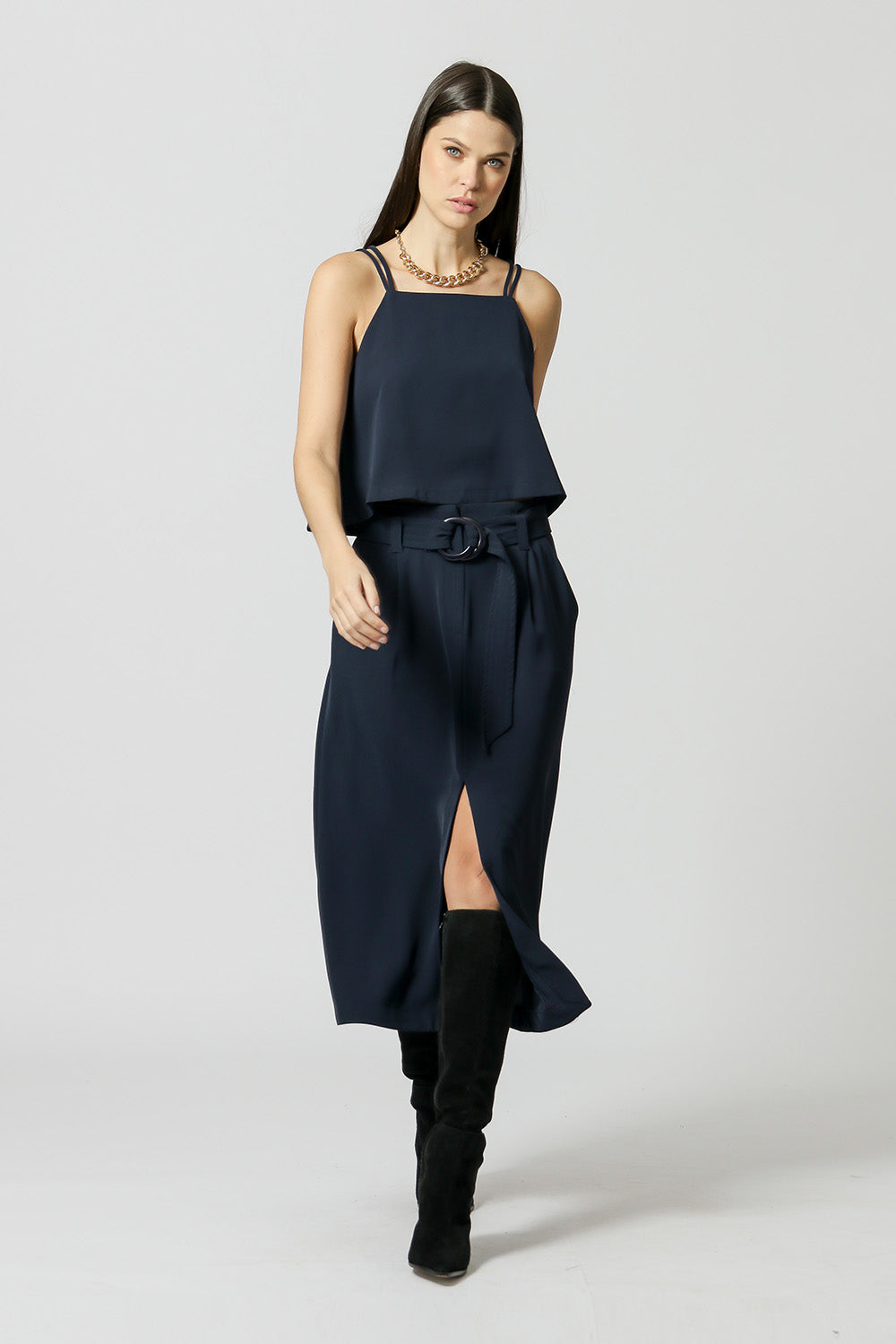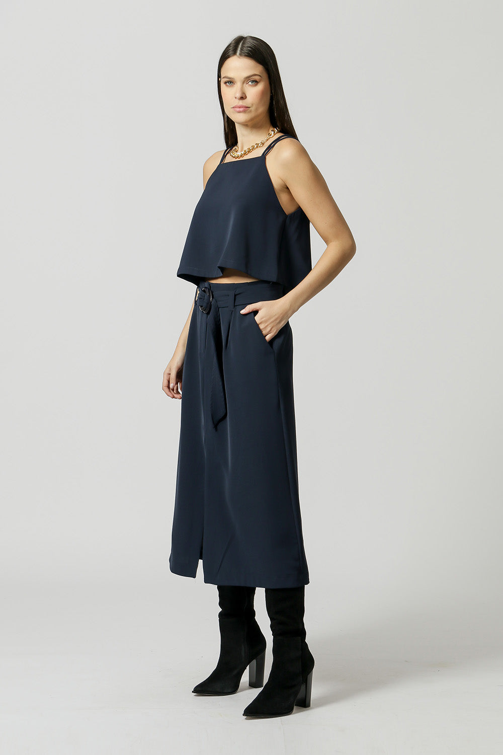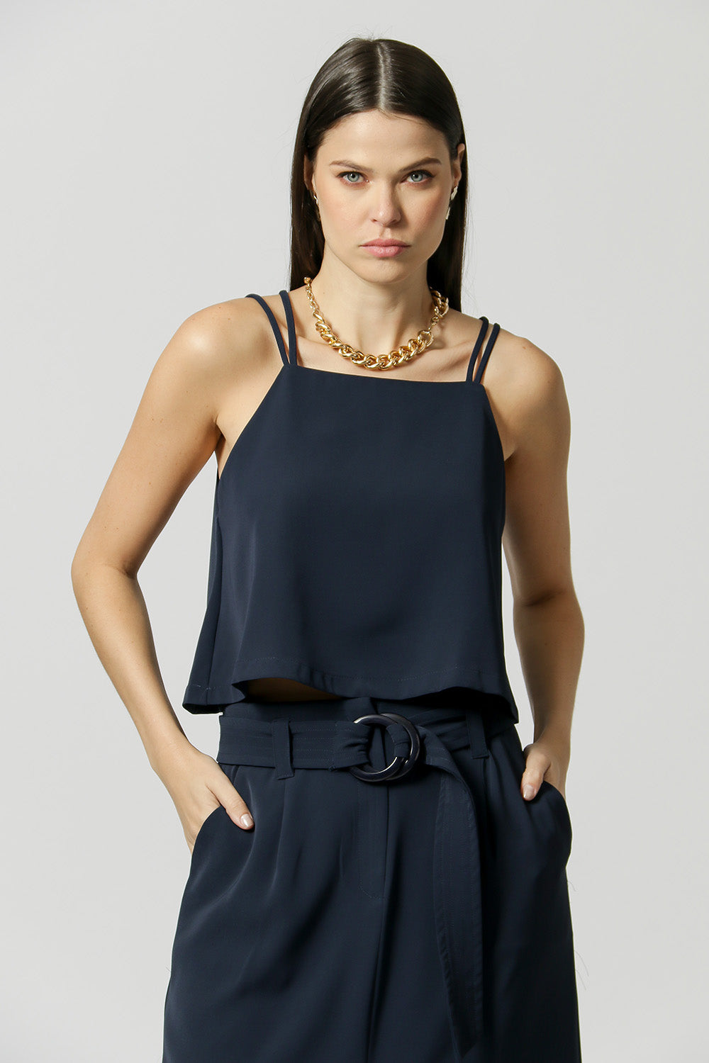 Blusa confeccionada en tejido de sarga. Pieza de corte holgado al cuerpo, tirantes finos, escote cuadrado, largo cropped y sisa profunda. Pieza ideal para crear looks casual.