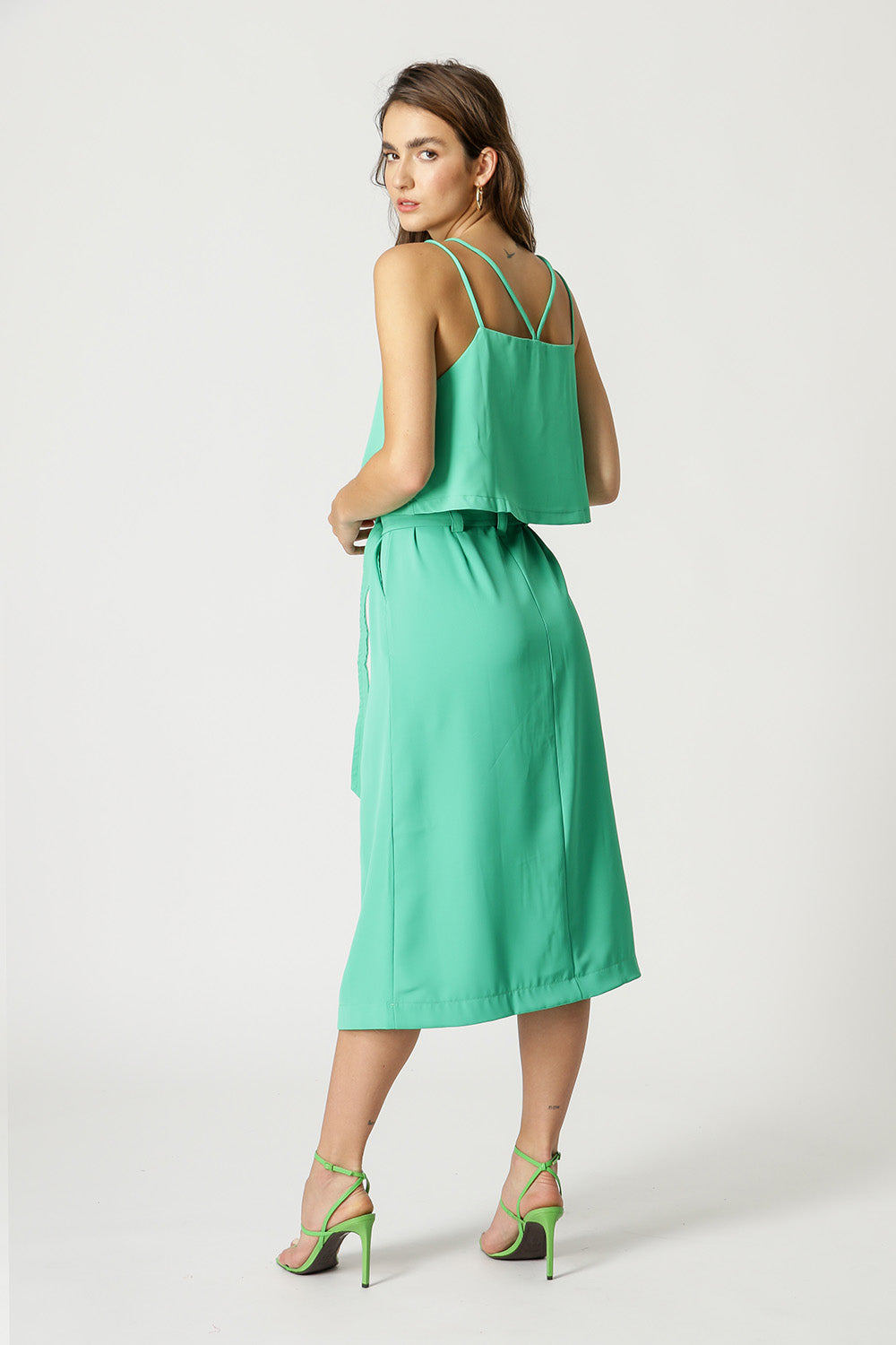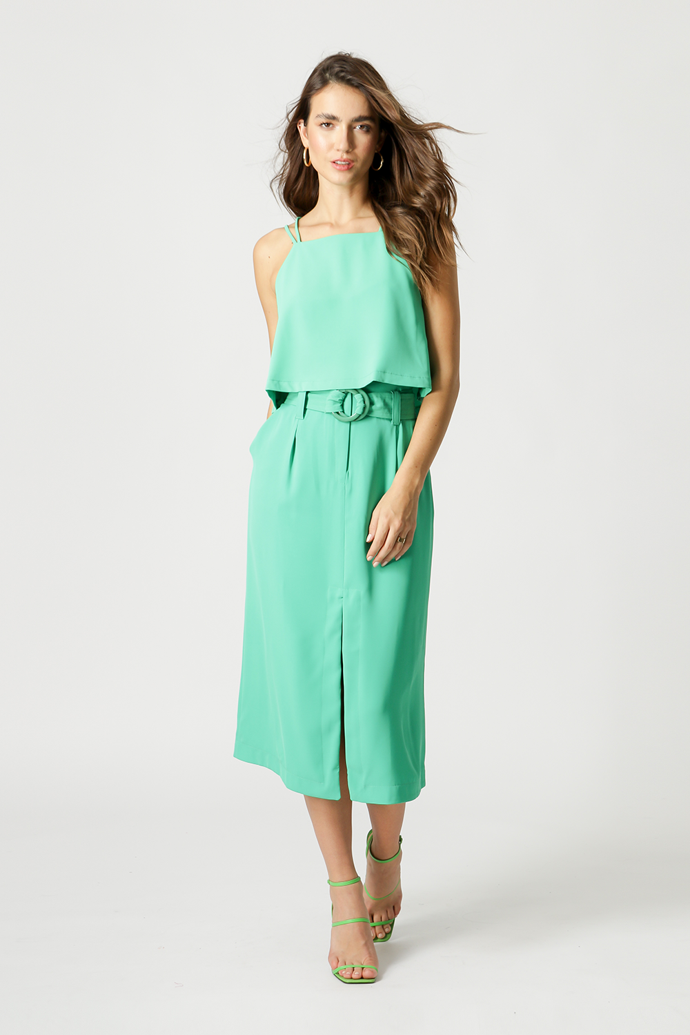 Blusa confeccionada en tejido de sarga. Pieza de corte holgado al cuerpo, tirantes finos, escote cuadrado, largo cropped y sisa profunda. Pieza ideal para crear looks casual.