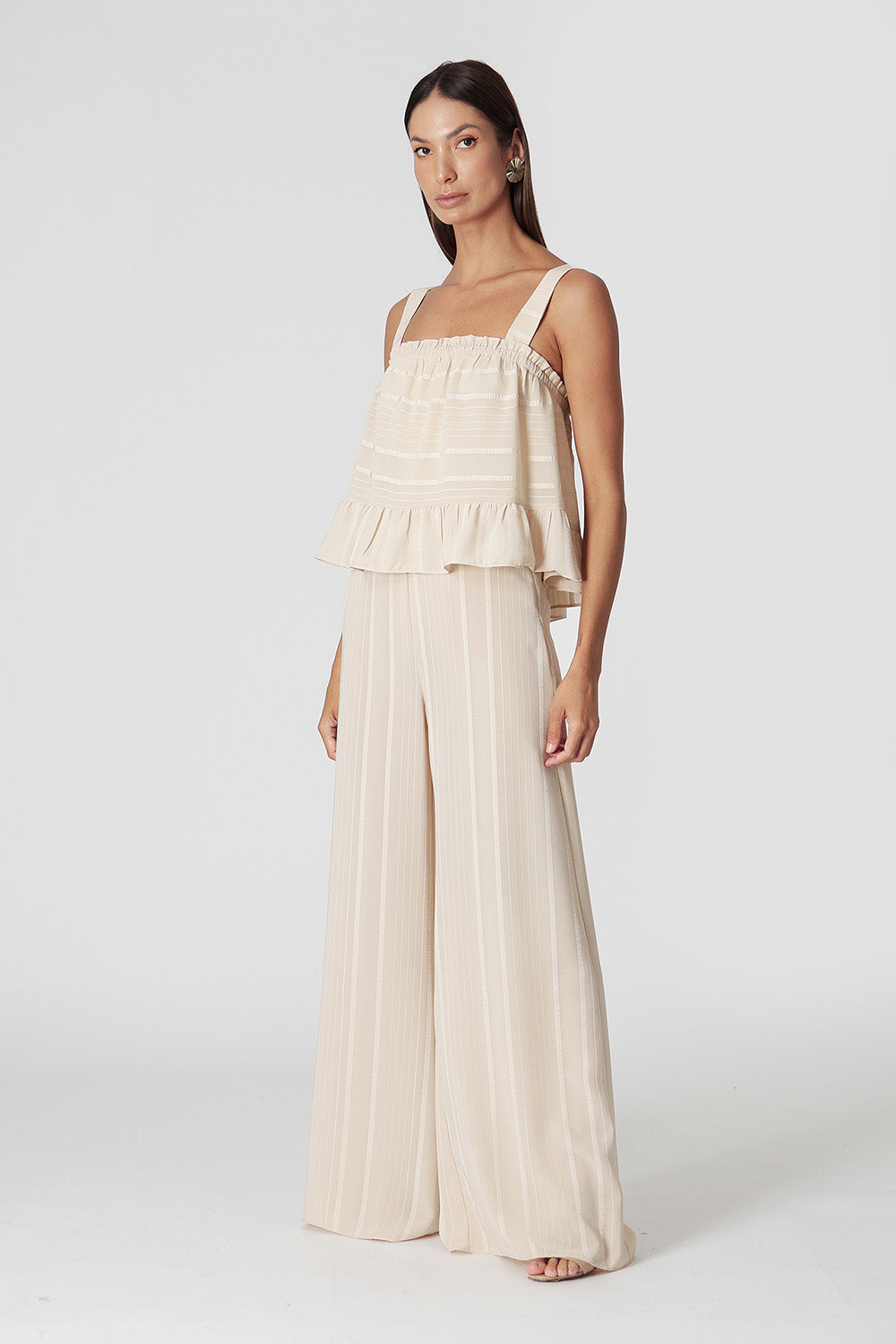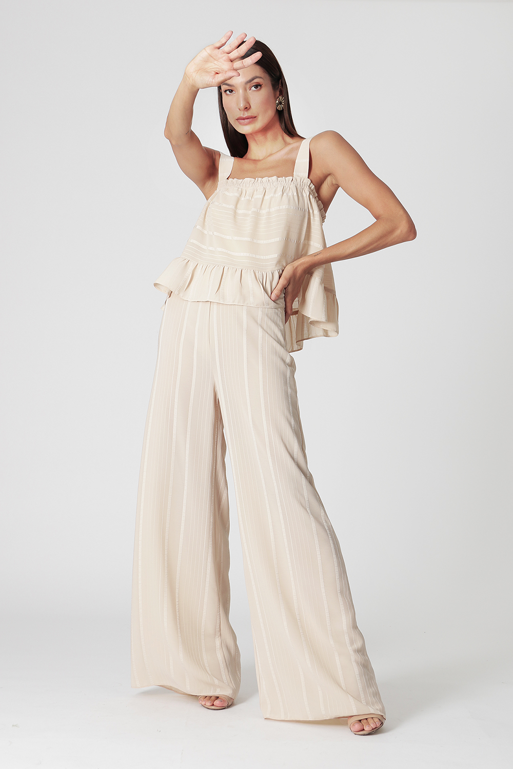 Blusa de tirantes anchos con detalle fruncido en escote y bajo. La pieza tiene forro y elástico en el escote. Una pieza con un look casual y fresco, ideal para los días de verano.