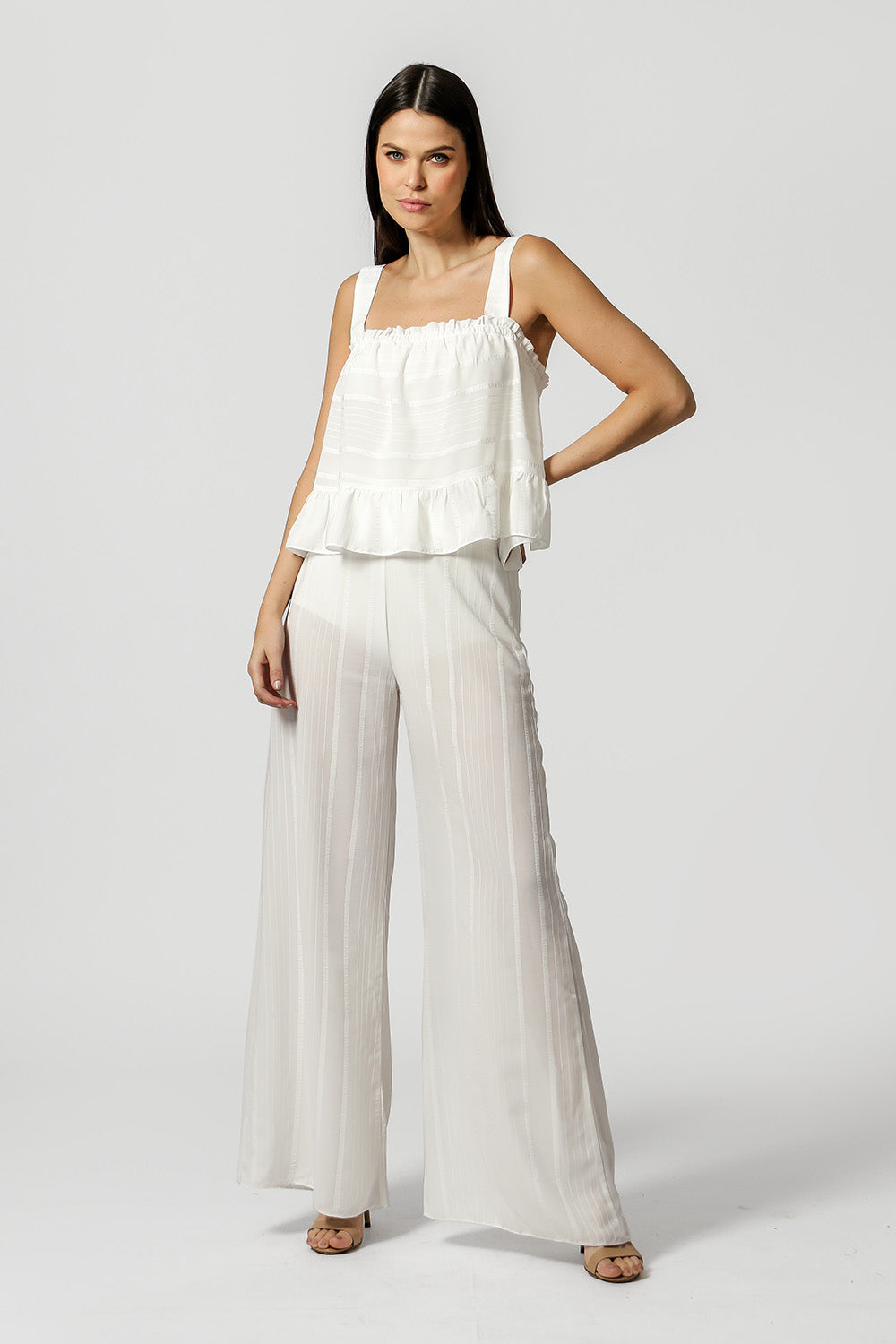 Blusa de tirantes anchos con detalle fruncido en escote y bajo. La pieza tiene forro y elástico en el escote. Una pieza con un look casual y fresco, ideal para los días de verano.