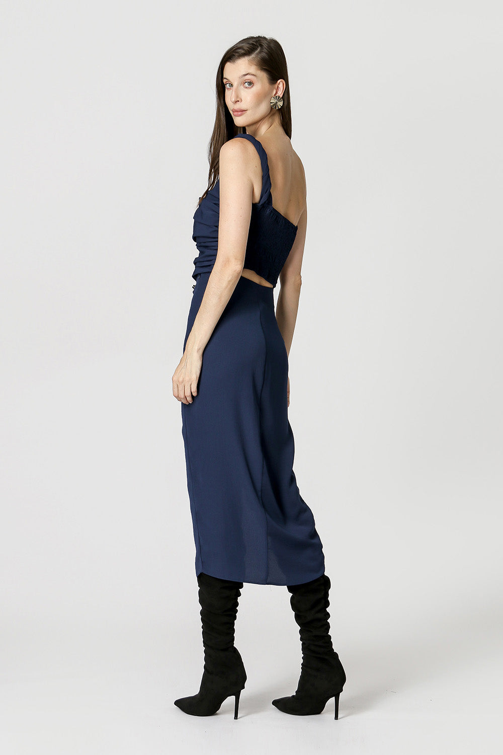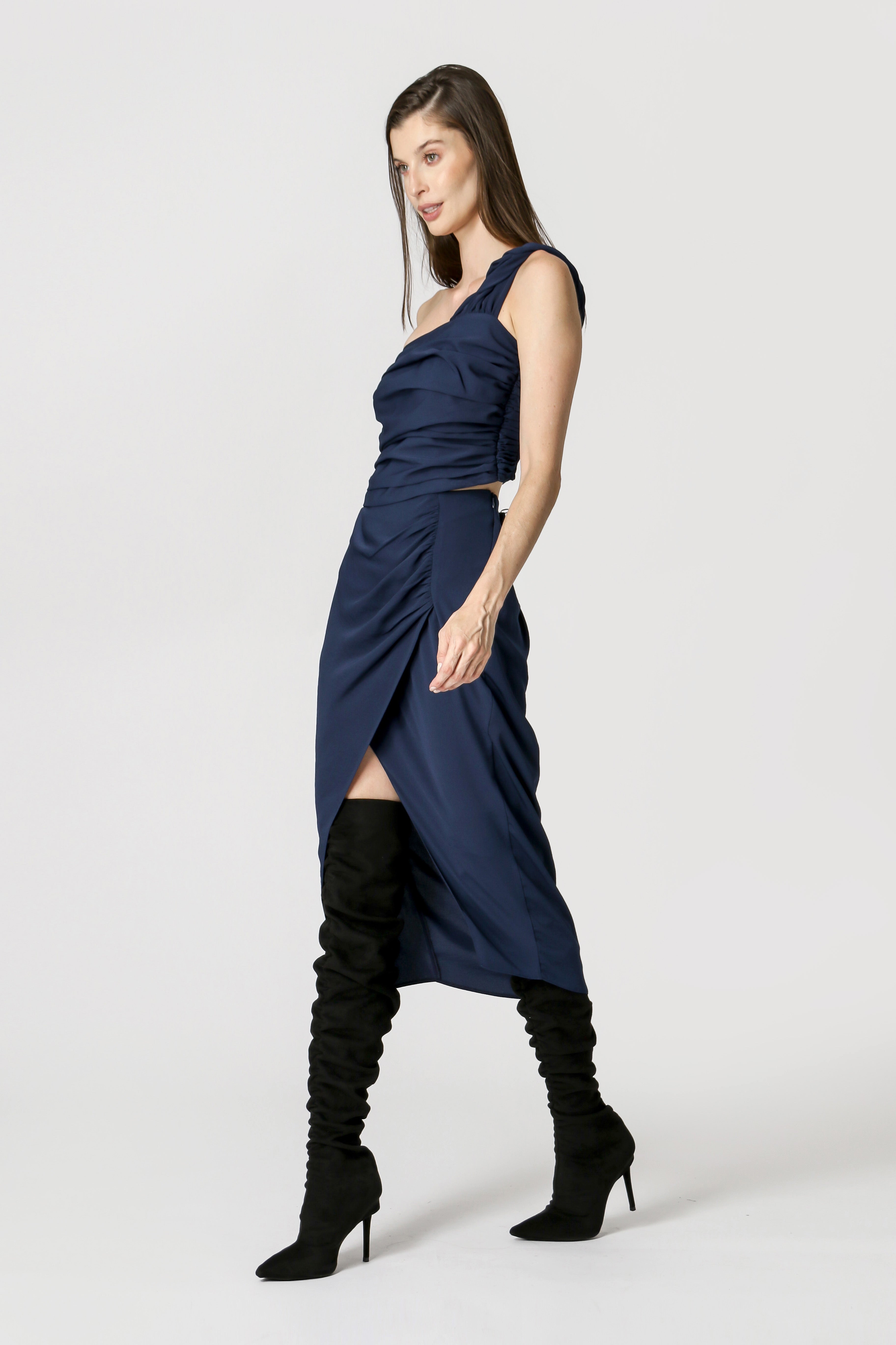 Blusa cropped confeccionada en sarga de crepe, con tirantes retorcidos y detalle fruncido. Pieza fashionista que le dará un toque diferente a tu look.