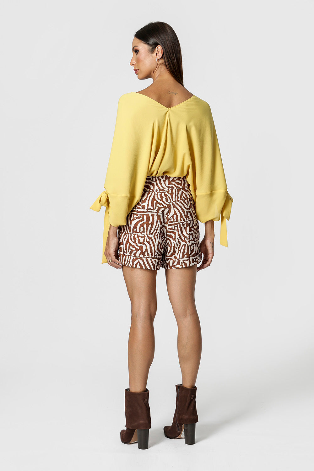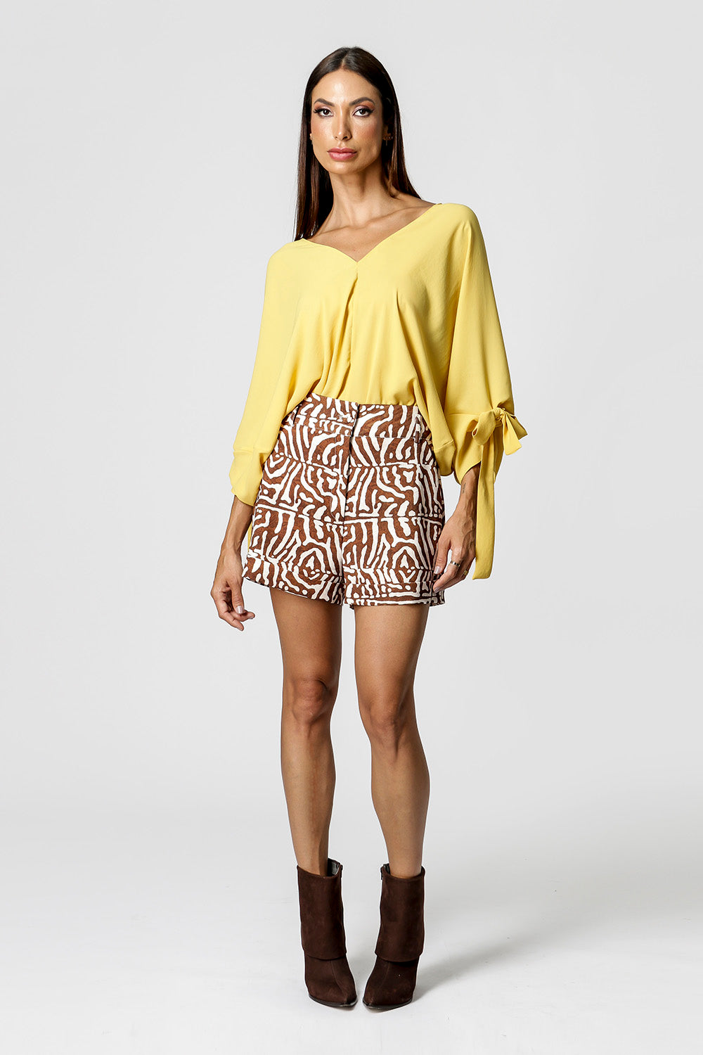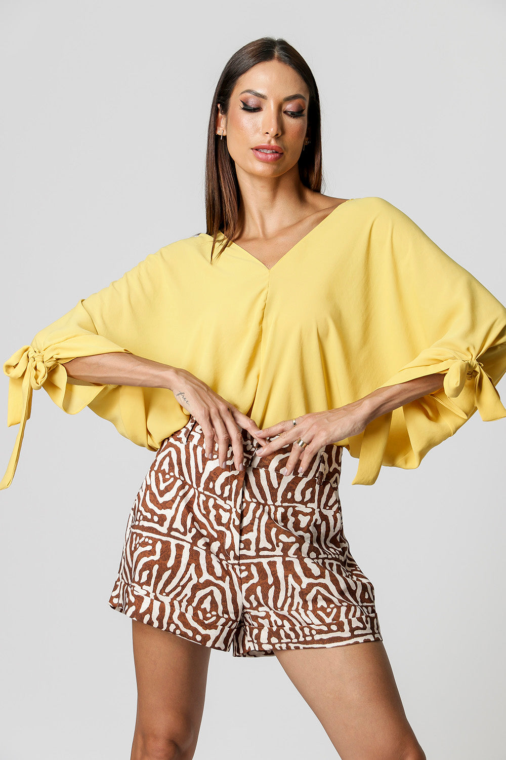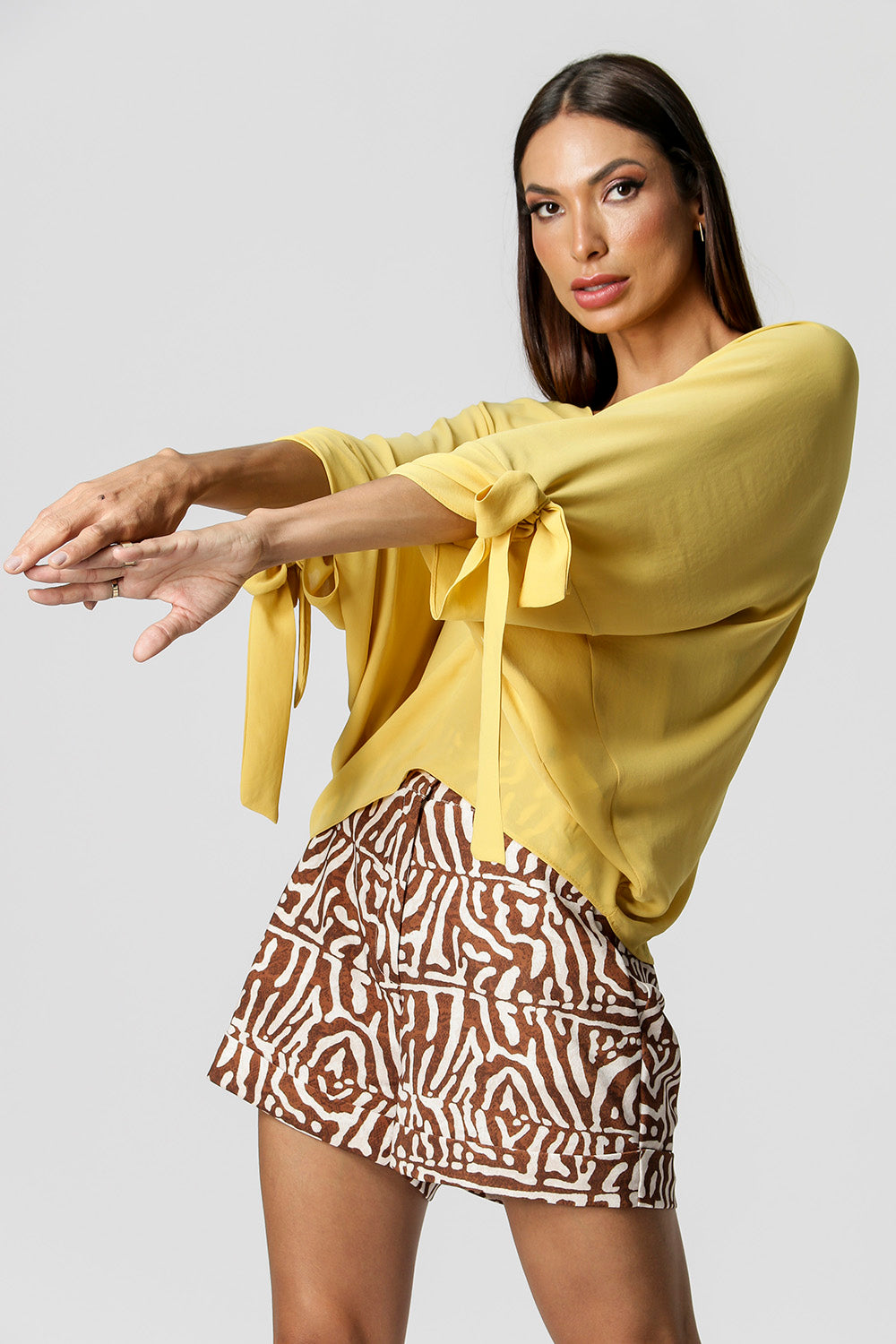 Blusa holgada, escote en pico con detalle de lazo al final de la manga. Pieza súper casual para lucir un look casual.