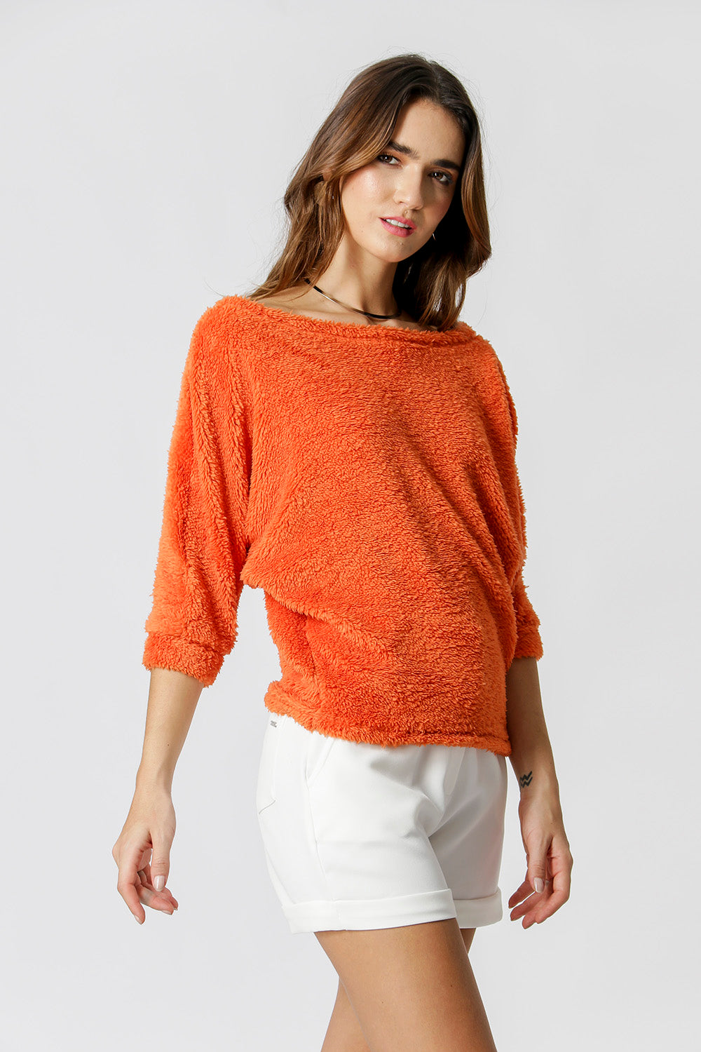 Blusa holgada con mangas 3/4. Fabricado en tejido flocado. Una pieza cálida y confortable para crear looks invernales.