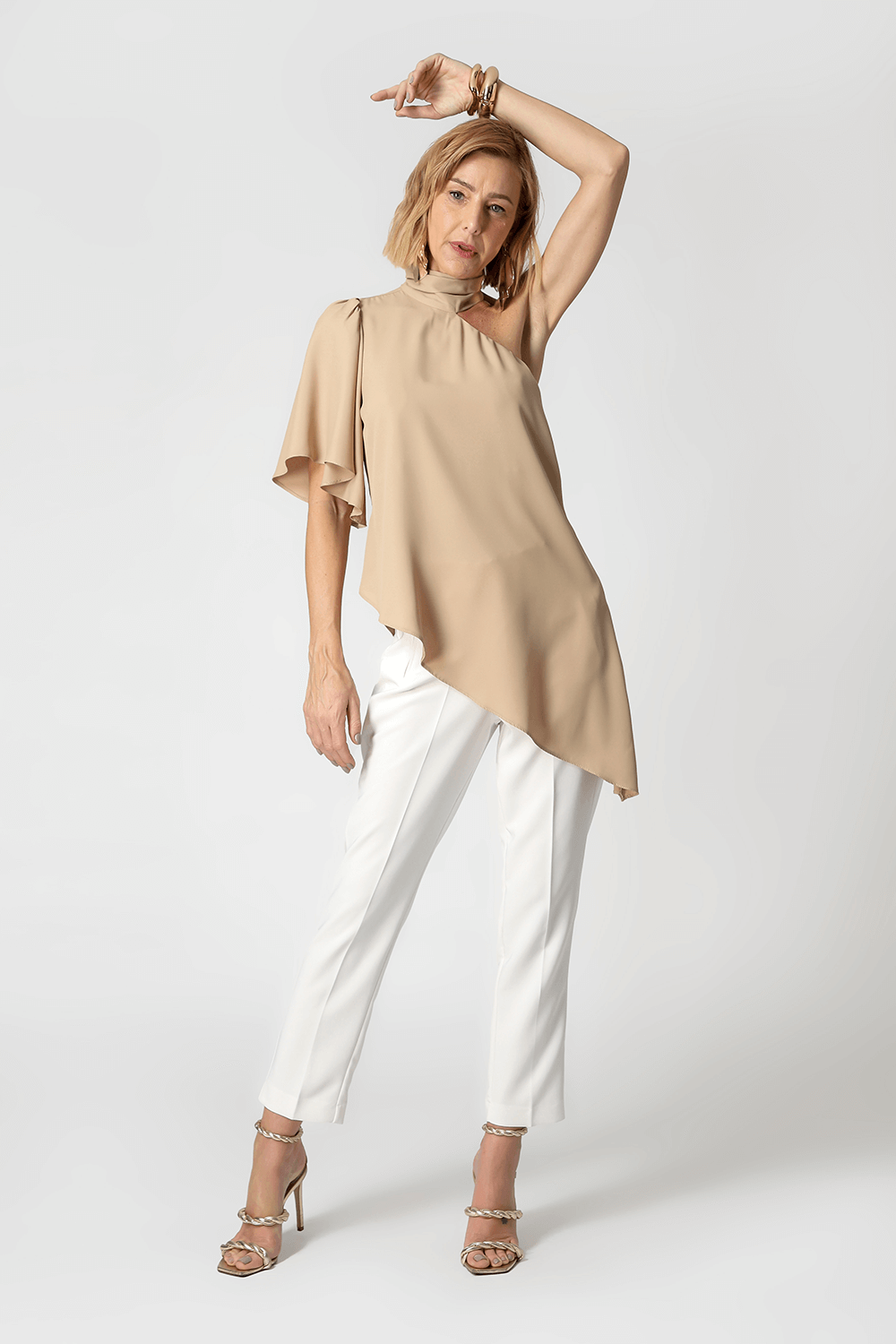 Blusa Asimétrica Con Cuello. Pieza elegante para componer múltiples looks.