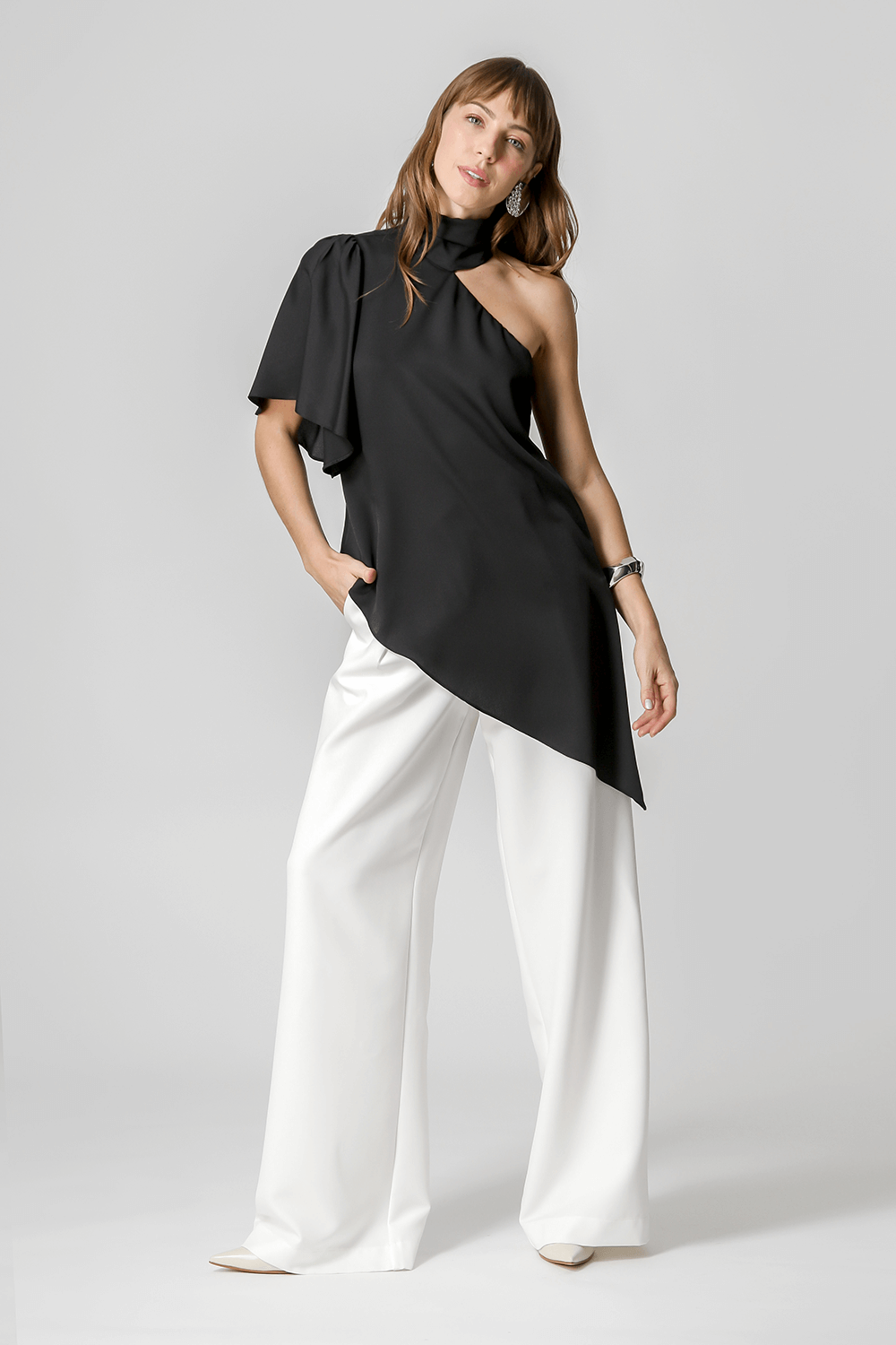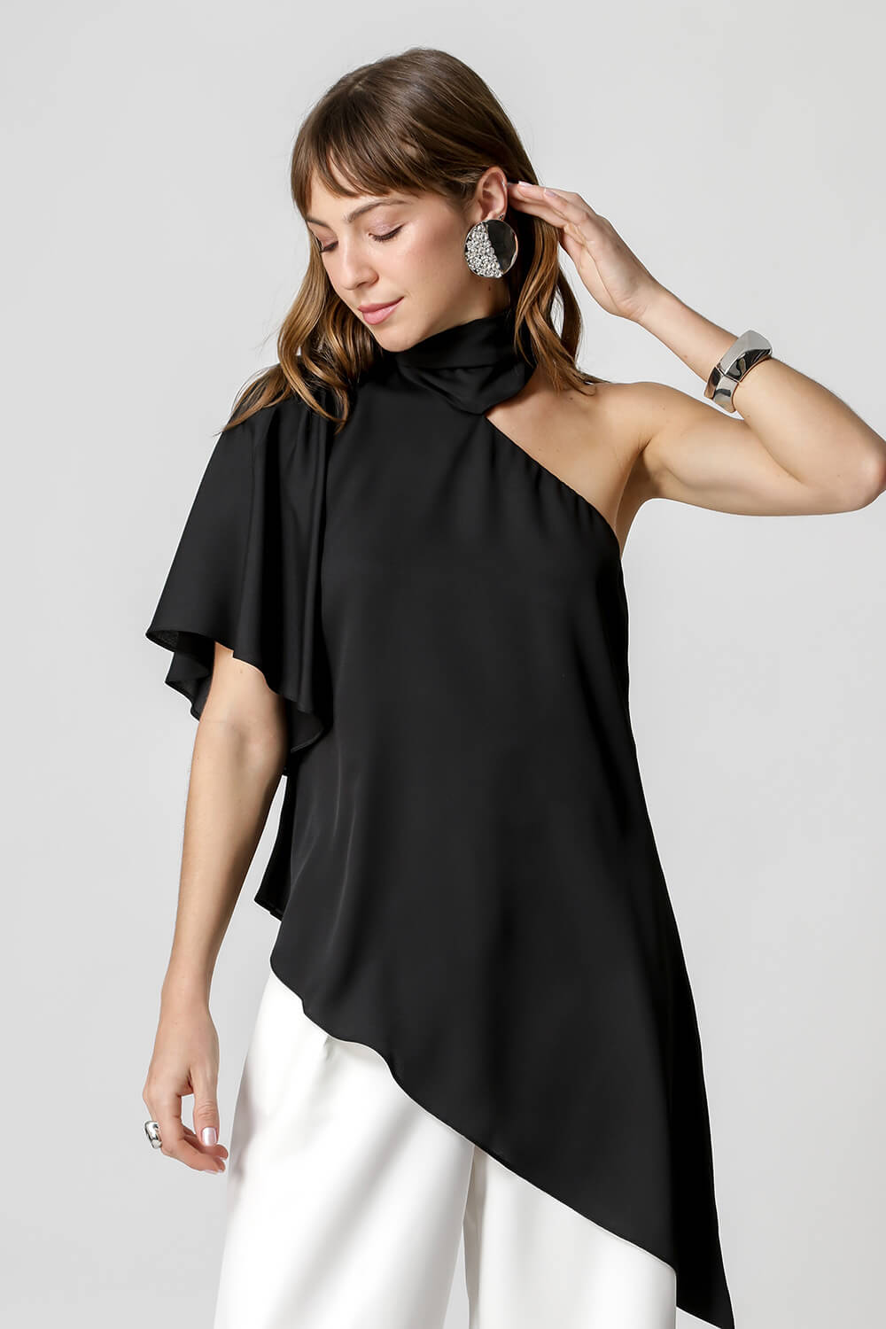 Blusa Asimétrica Con Cuello. Pieza elegante para componer múltiples looks.