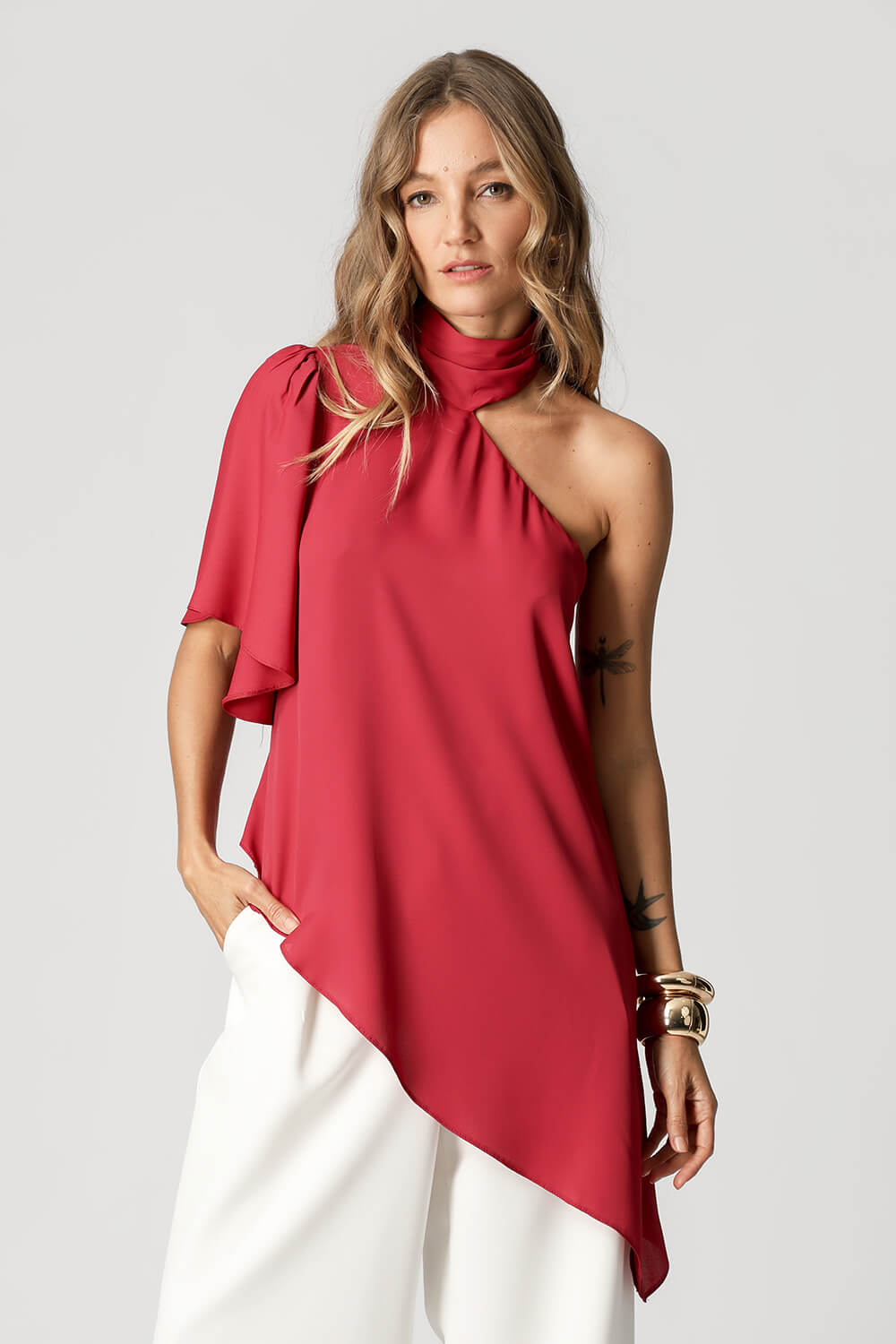 Blusa Asimétrica Con Cuello. Pieza elegante para componer múltiples looks.
