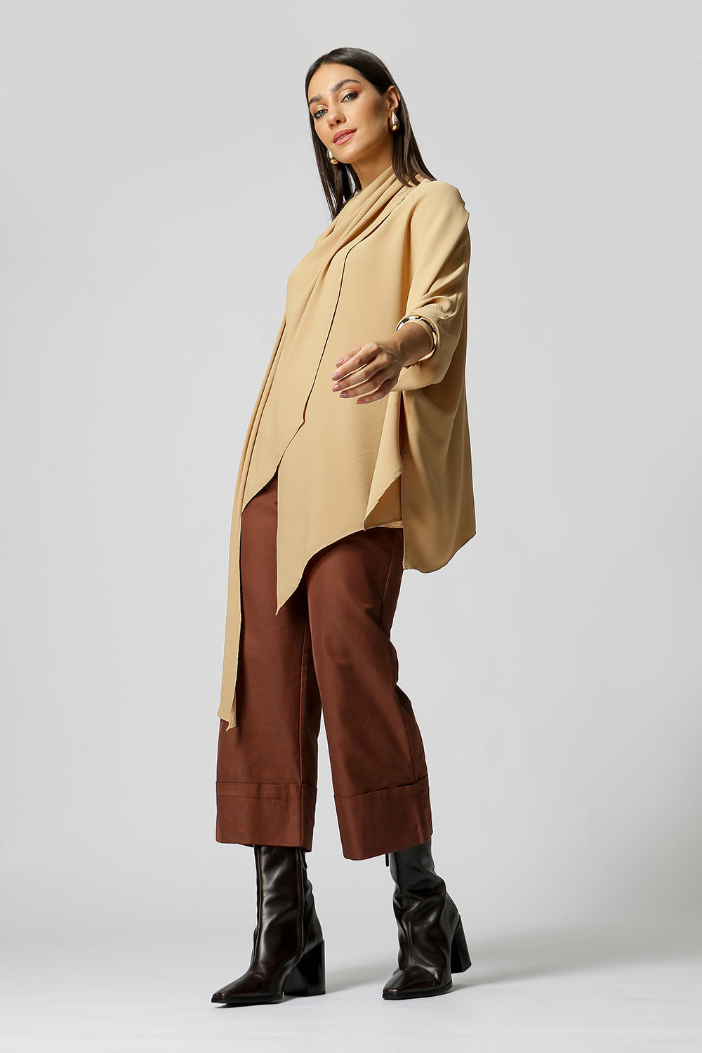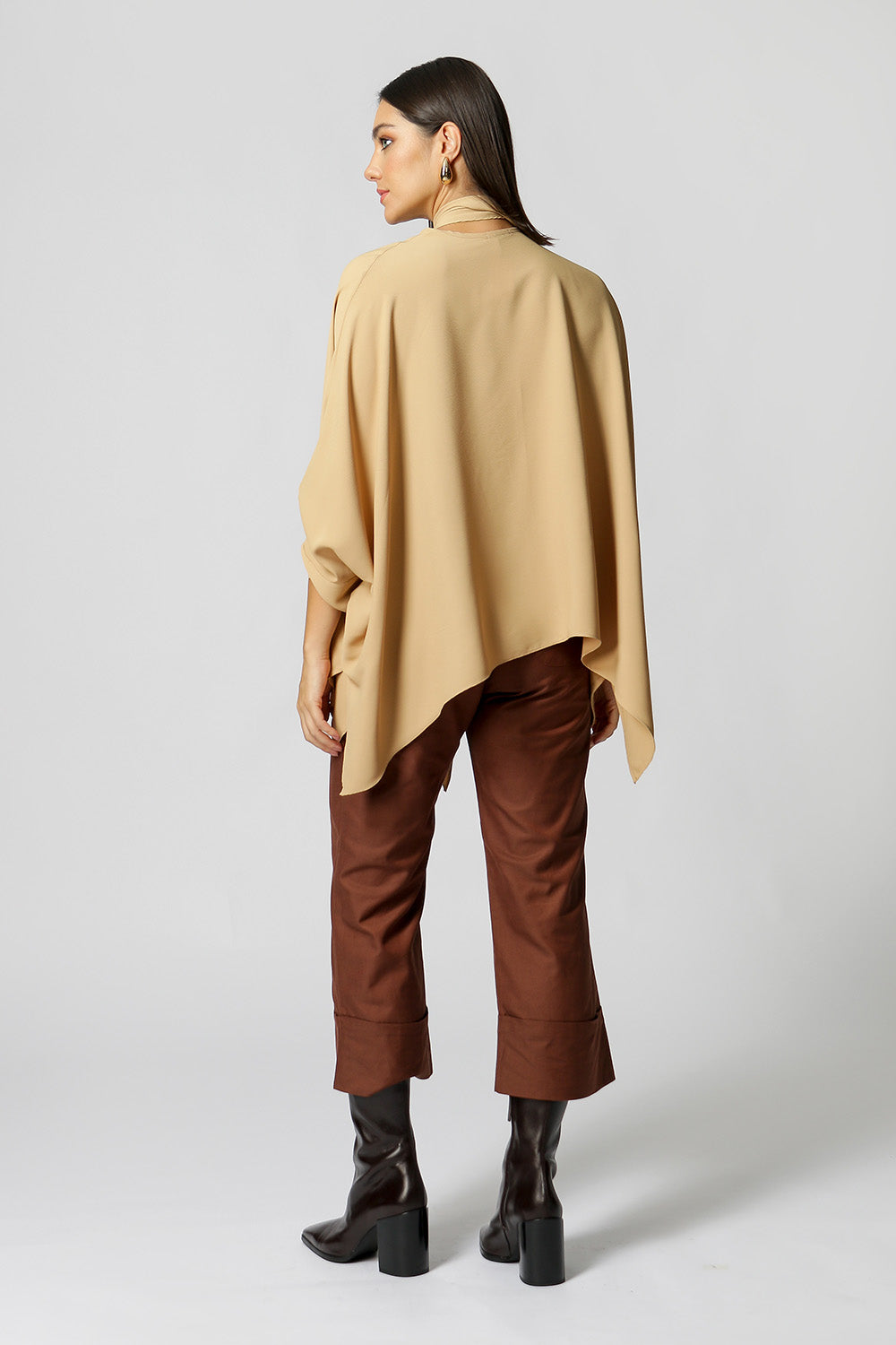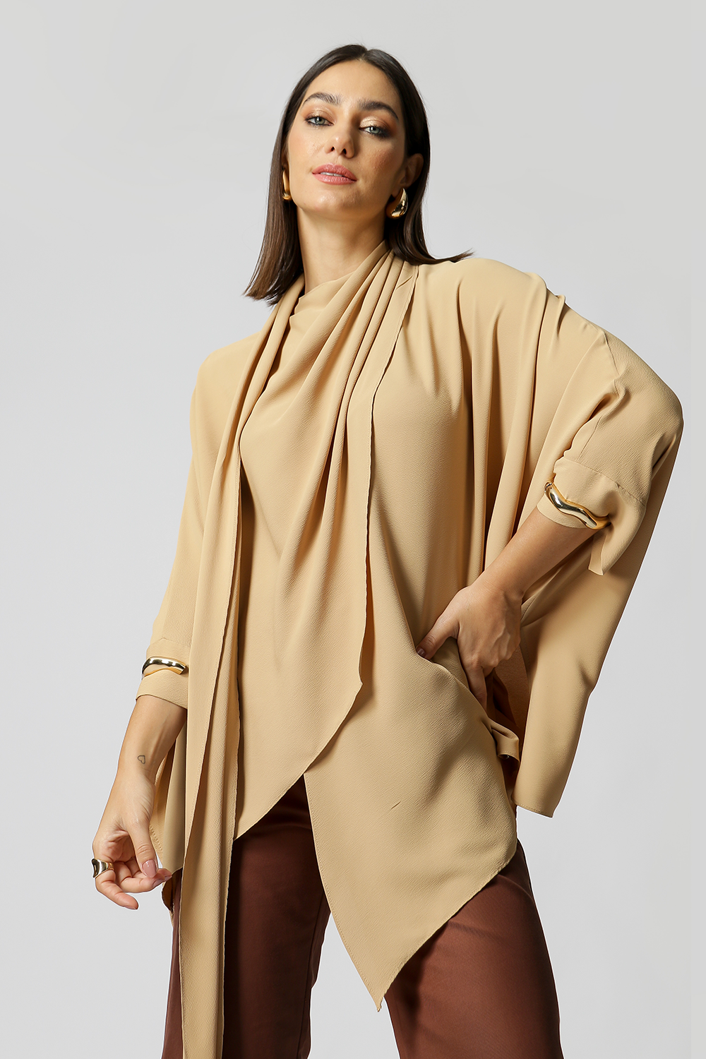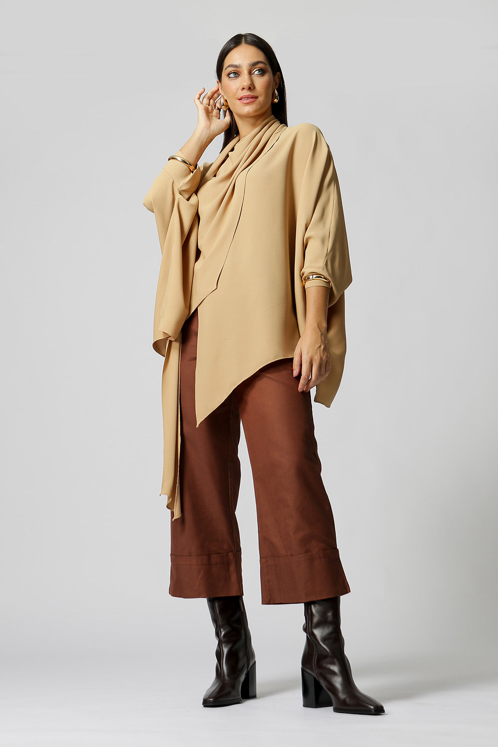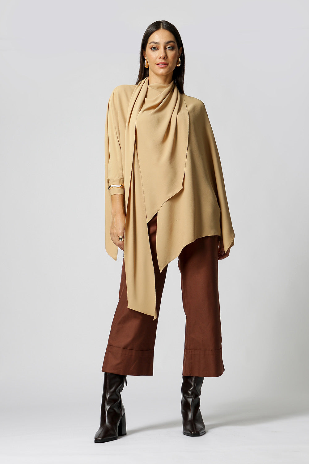 Blusa asimétrica con pañuelo extraíble que se puede llevar de diferentes maneras, ¡anímate!