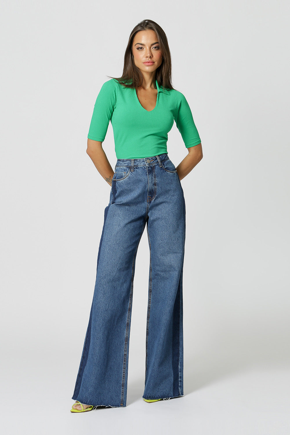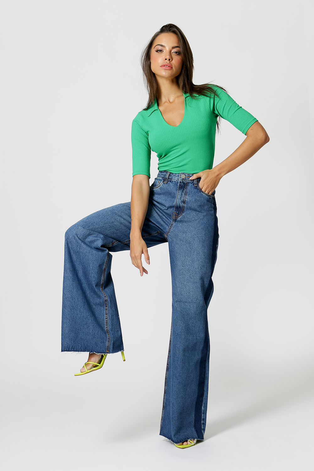 Blusa básica confeccionada en punto canalé, con corte que se ajusta al cuerpo. Detalle de escote en pico y cuello. Tiene el toque básico y distintivo que estabas buscando.