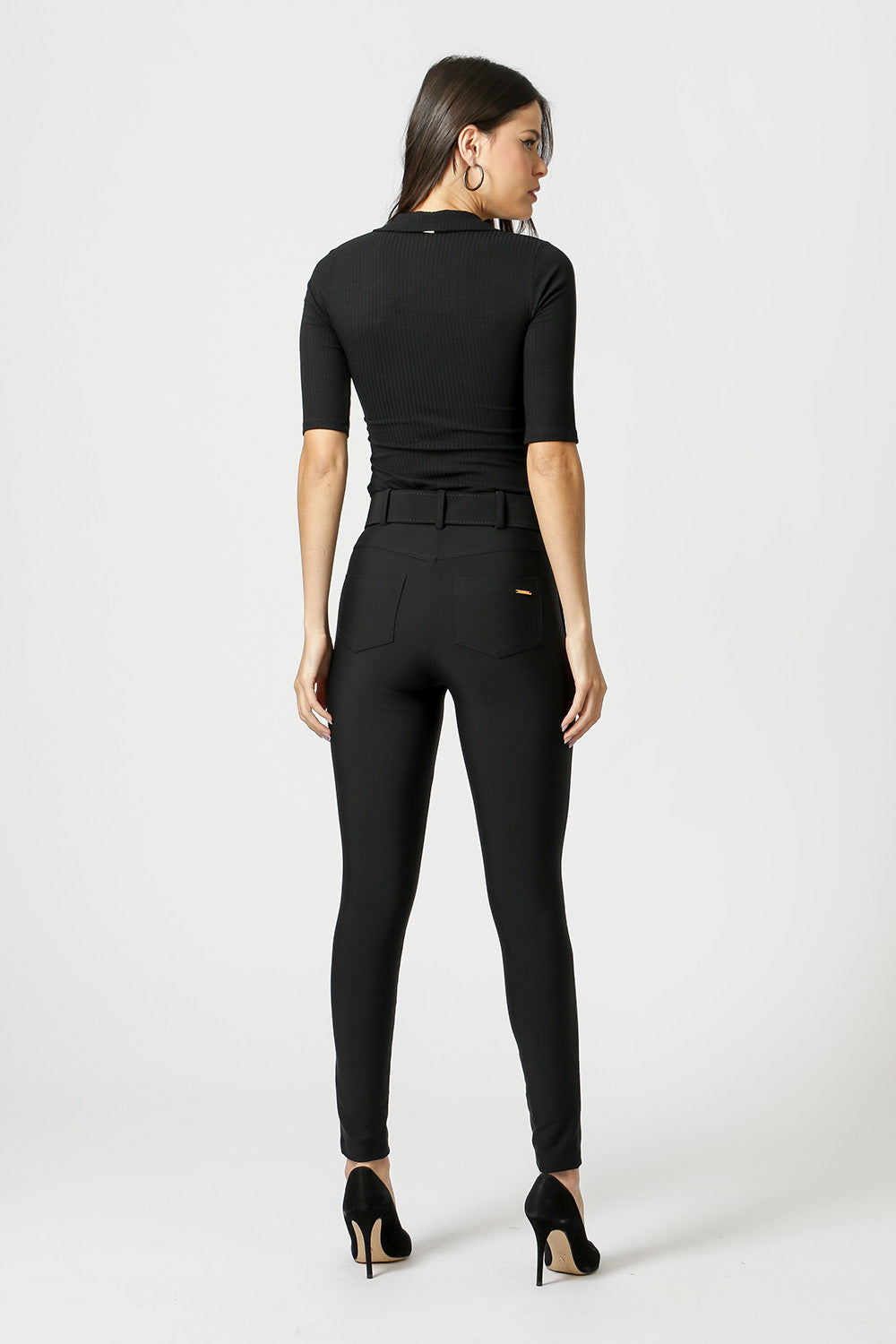 Blusa básica confeccionada en punto canalé, con corte que se ajusta al cuerpo. Detalle de escote en pico y cuello. Tiene el toque básico y distintivo que estabas buscando.
