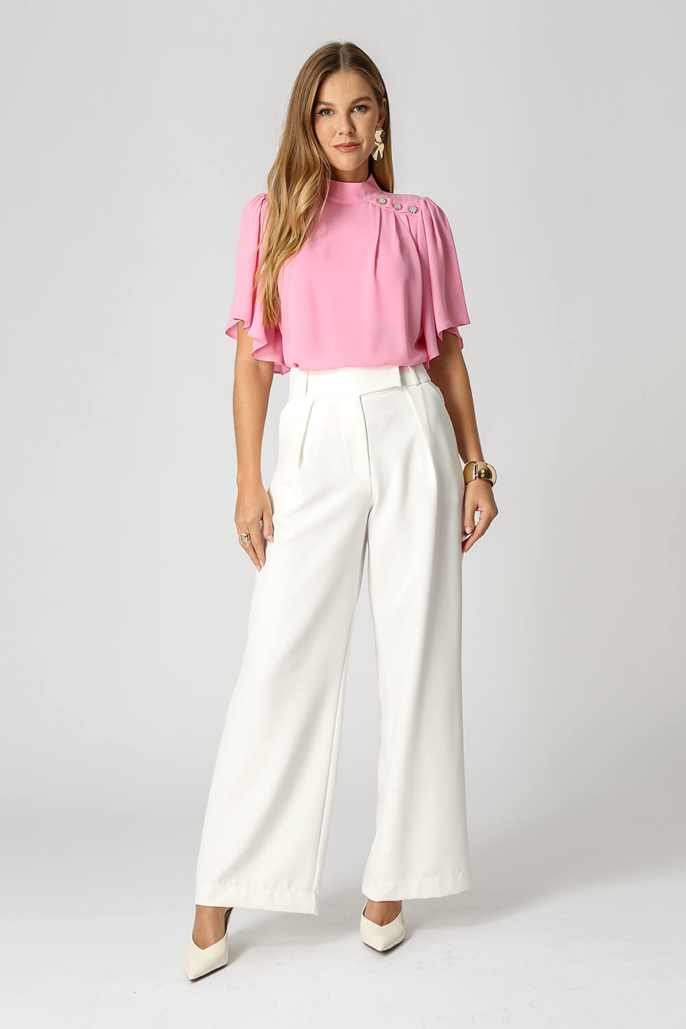 • Blusa Botões Dourados e Manga Angel - PINK CLARO