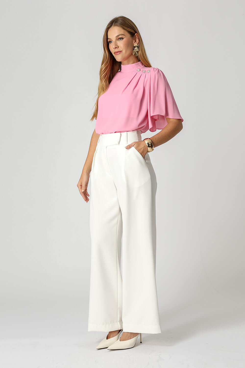 Blusa Botões Dourados e Manga Angel - PINK CLARO