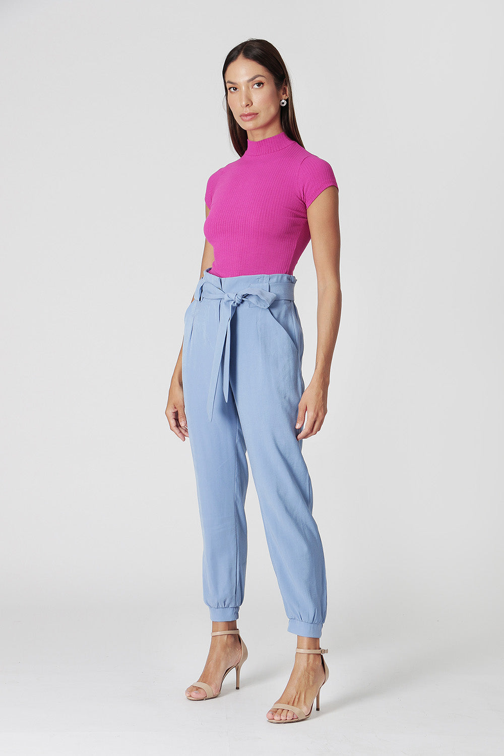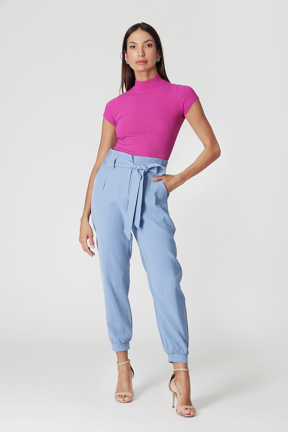 Blusa acanalada, tiene manga corta y cuello alto. Pieza básica para el uso diario.