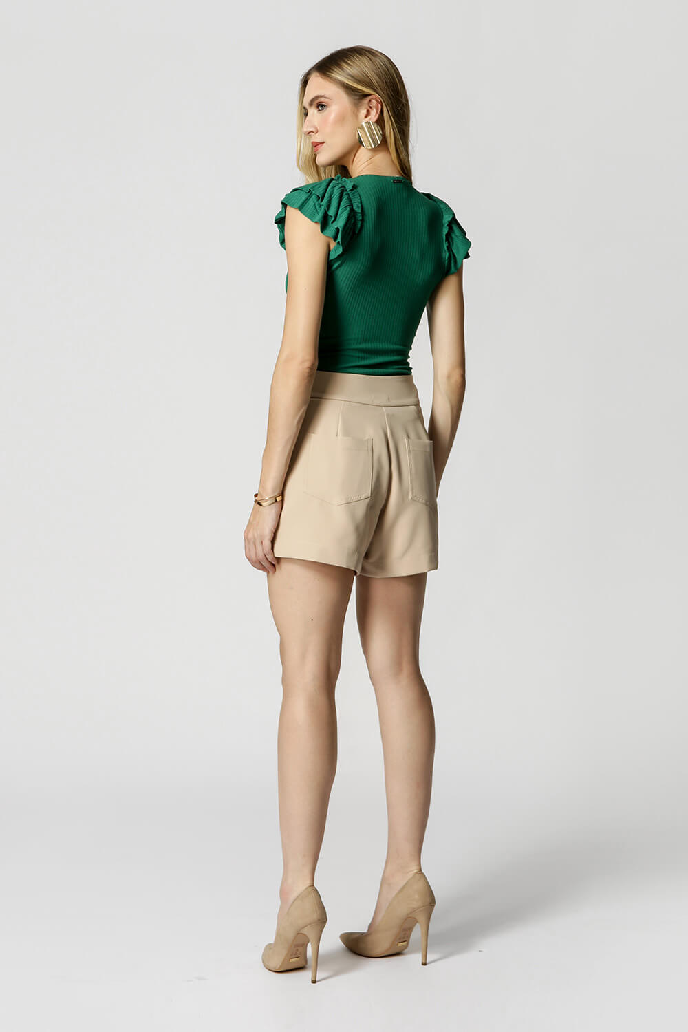 Blusa confeccionada en punto canalé, de corte ajustado, manga corta con 2 capas de volantes. Una pieza única con mucho encanto, que dejará tu look actual y preparado para cualquier ocasión.