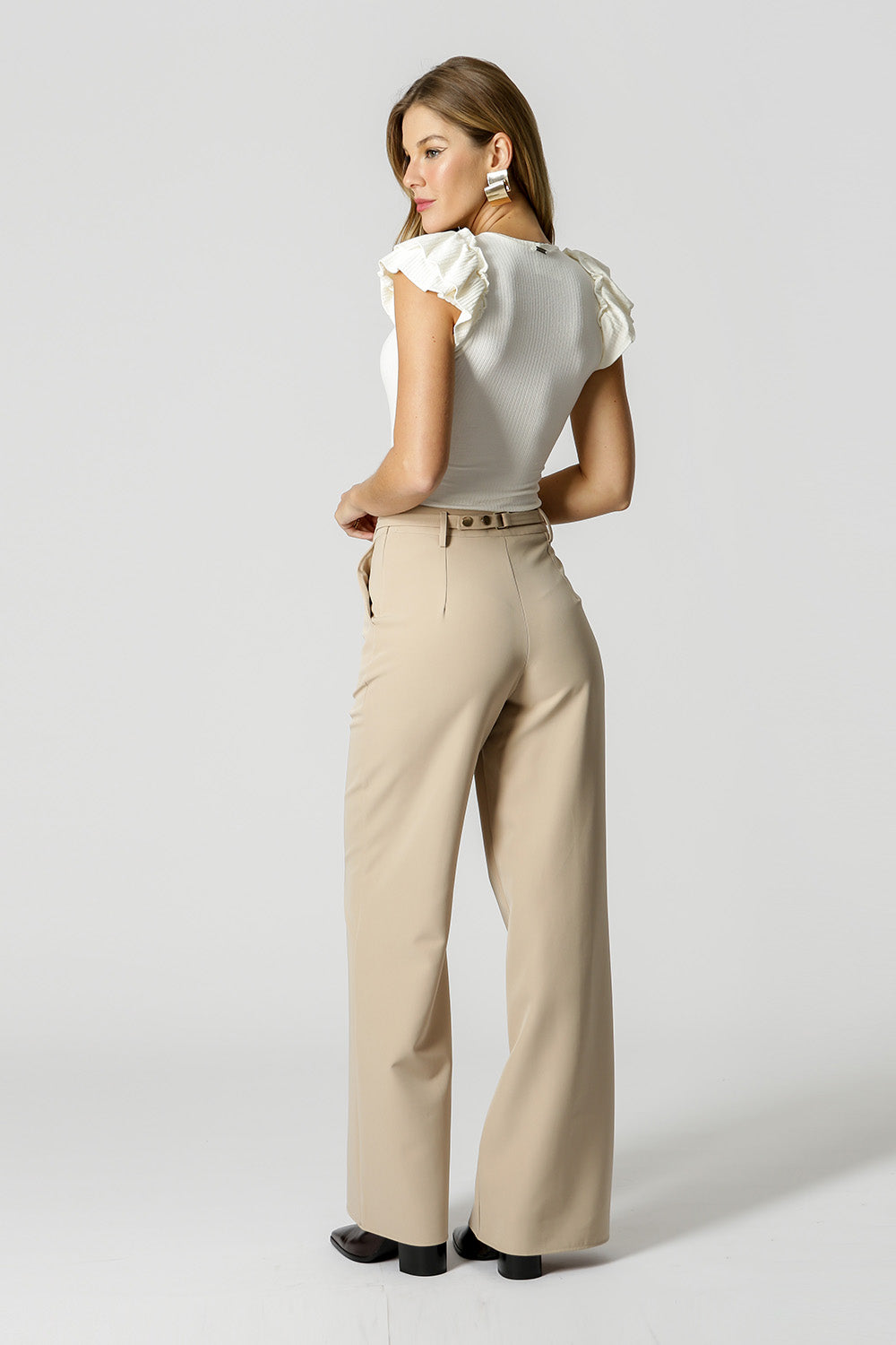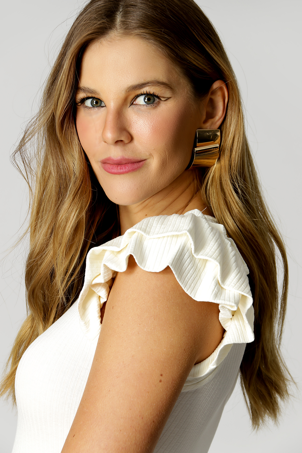 Blusa confeccionada en punto canalé, de corte ajustado, manga corta con 2 capas de volantes. Una pieza única con mucho encanto, que dejará tu look actual y preparado para cualquier ocasión.