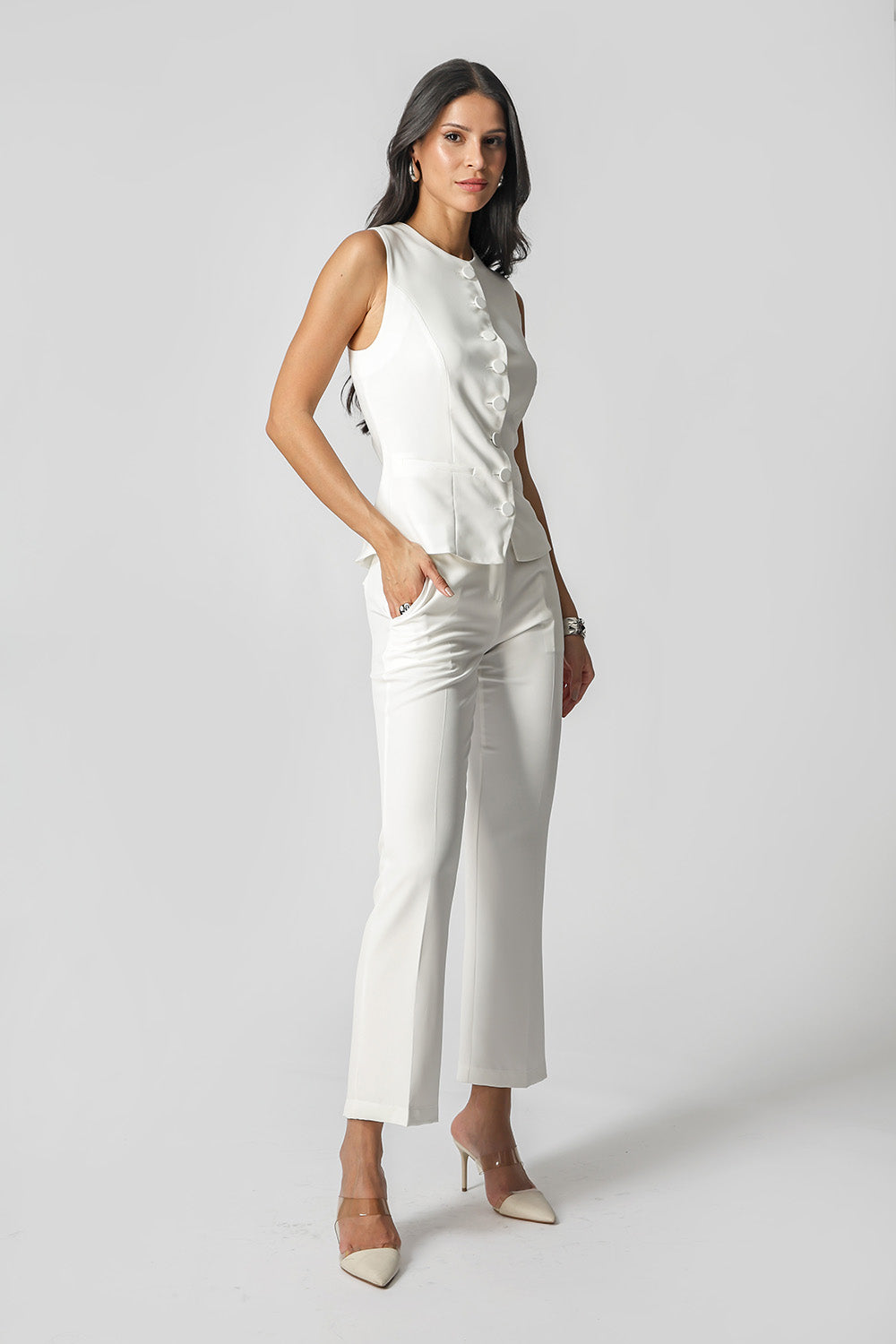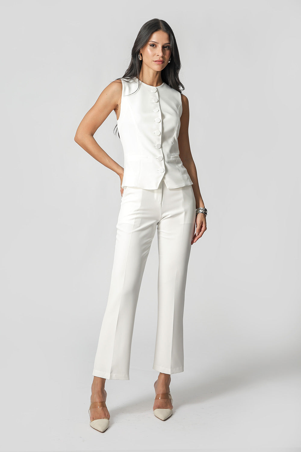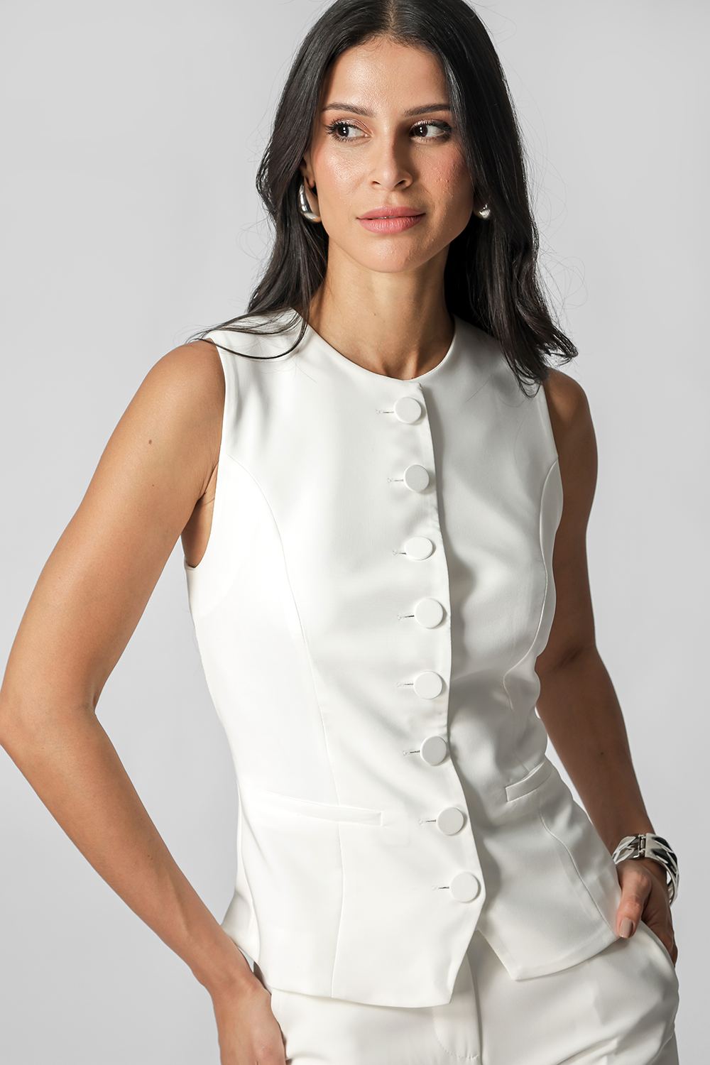 Blusa tipo chaleco, botones delanteros, pieza elegante e ideal para momentos de trabajo.