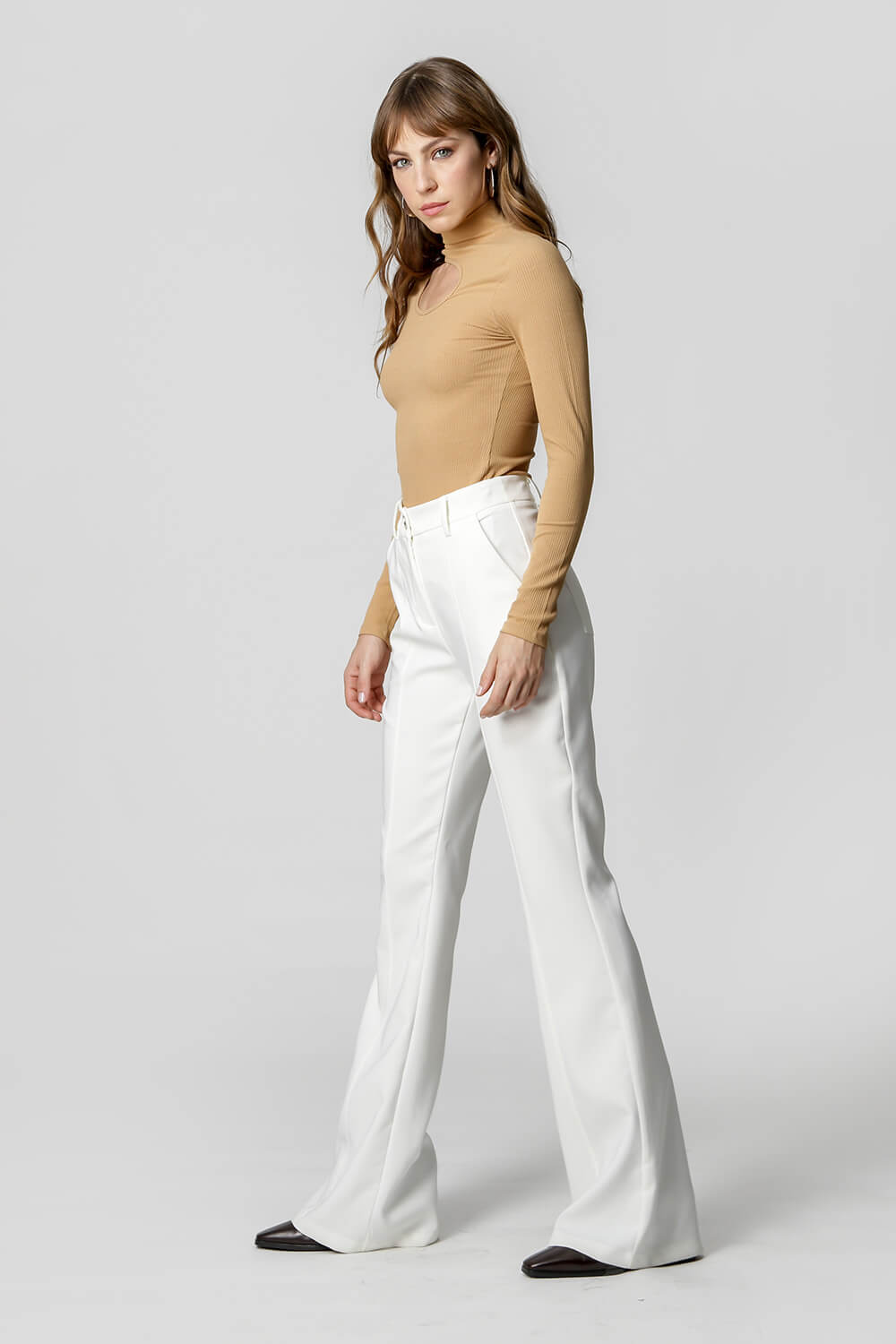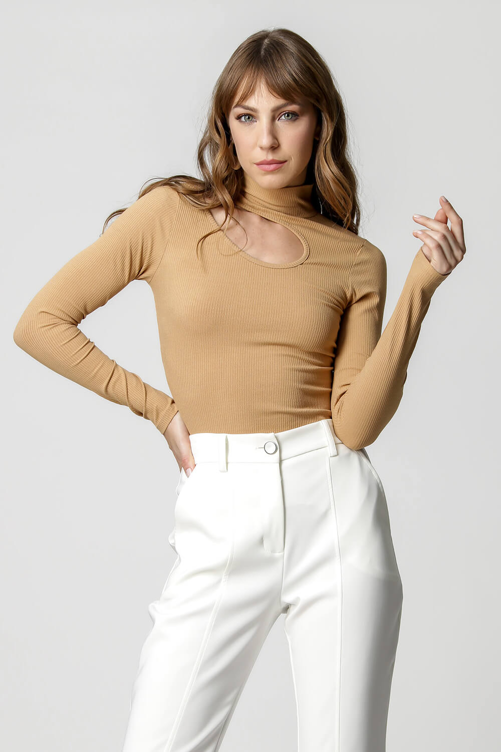 Blusa de manga larga con abertura en el escote. Fabricado en tejido acanalado fino. Un modelo básico pero moderno, para que uses en tus looks casual y rockees con estilo.