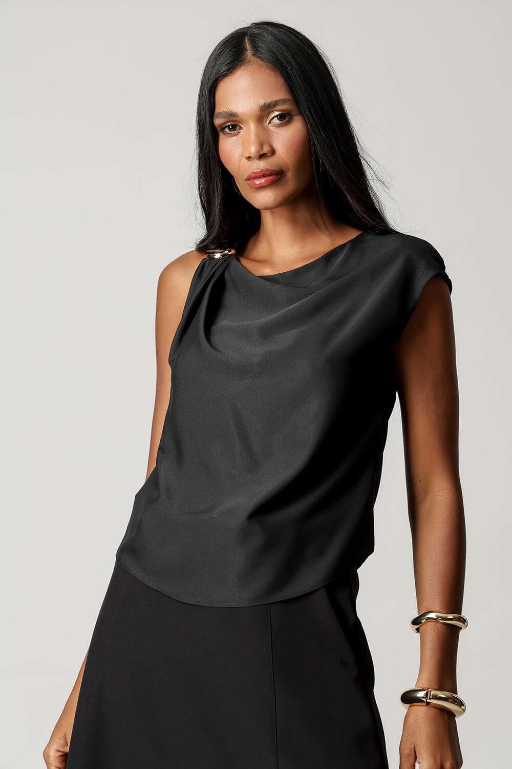 Blusa con accesorio fijo, modelo elegante y sofisticado en cada detalle, perfecta para composiciones elegantes, combinando con sastrería para un look sofisticado o jeans para un estilo moderno y casual.
