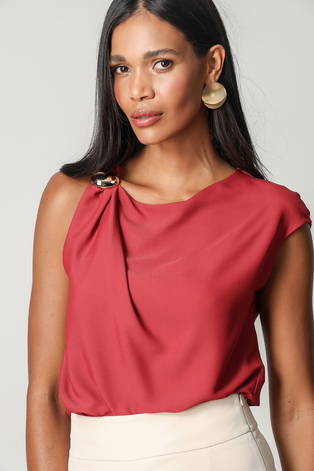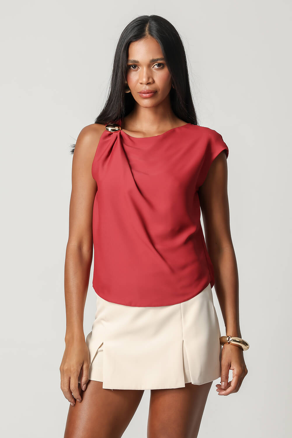 Blusa con accesorio fijo, modelo elegante y sofisticado en cada detalle, perfecta para composiciones elegantes, combinando con sastrería para un look sofisticado o jeans para un estilo moderno y casual.