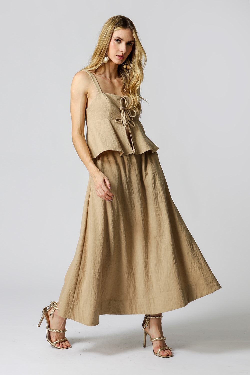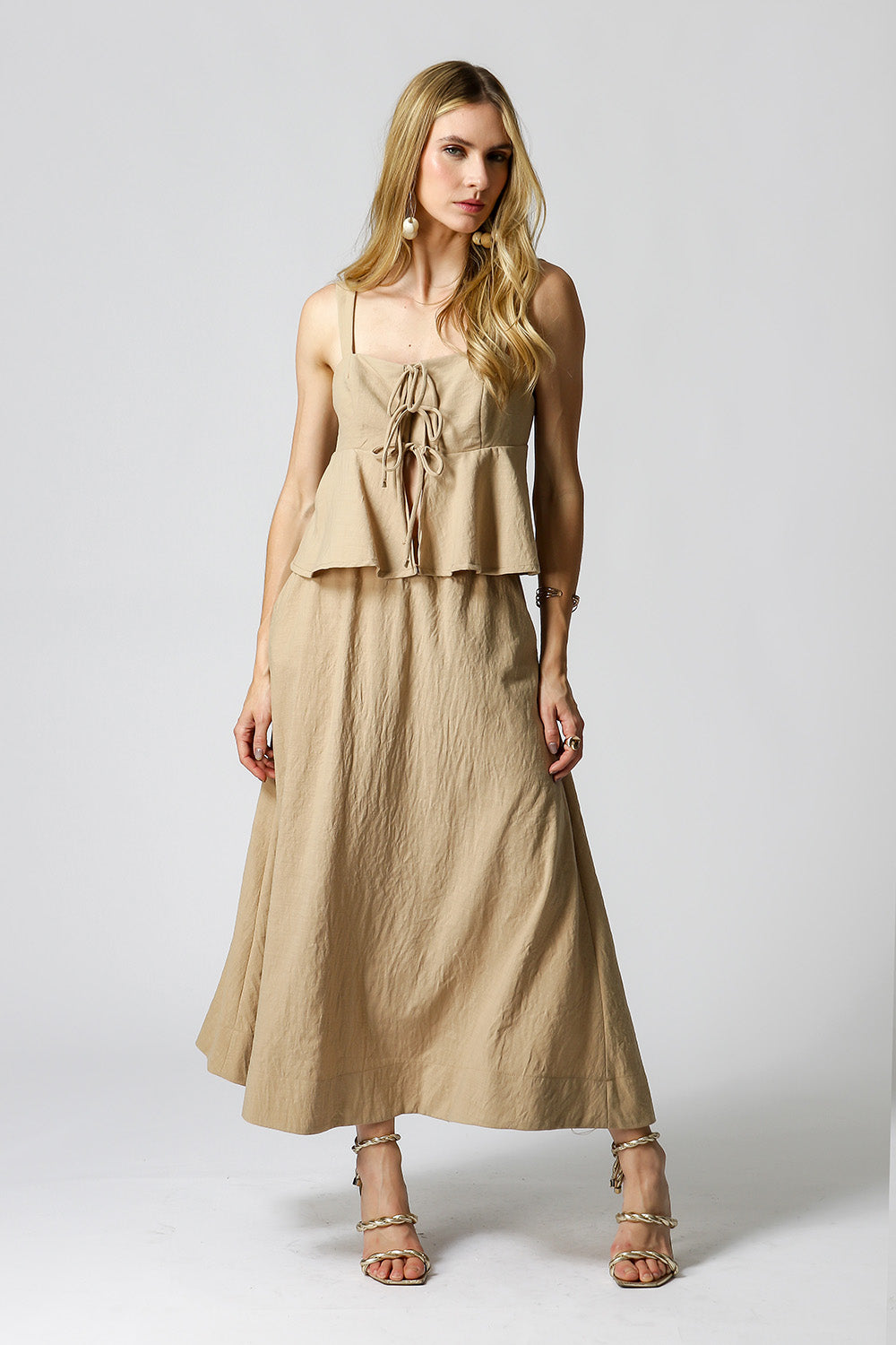 Blusa con lazo delantero, confeccionada en poli lino. Modelo romántico y moderno, ideal para estados de ánimo casuales.