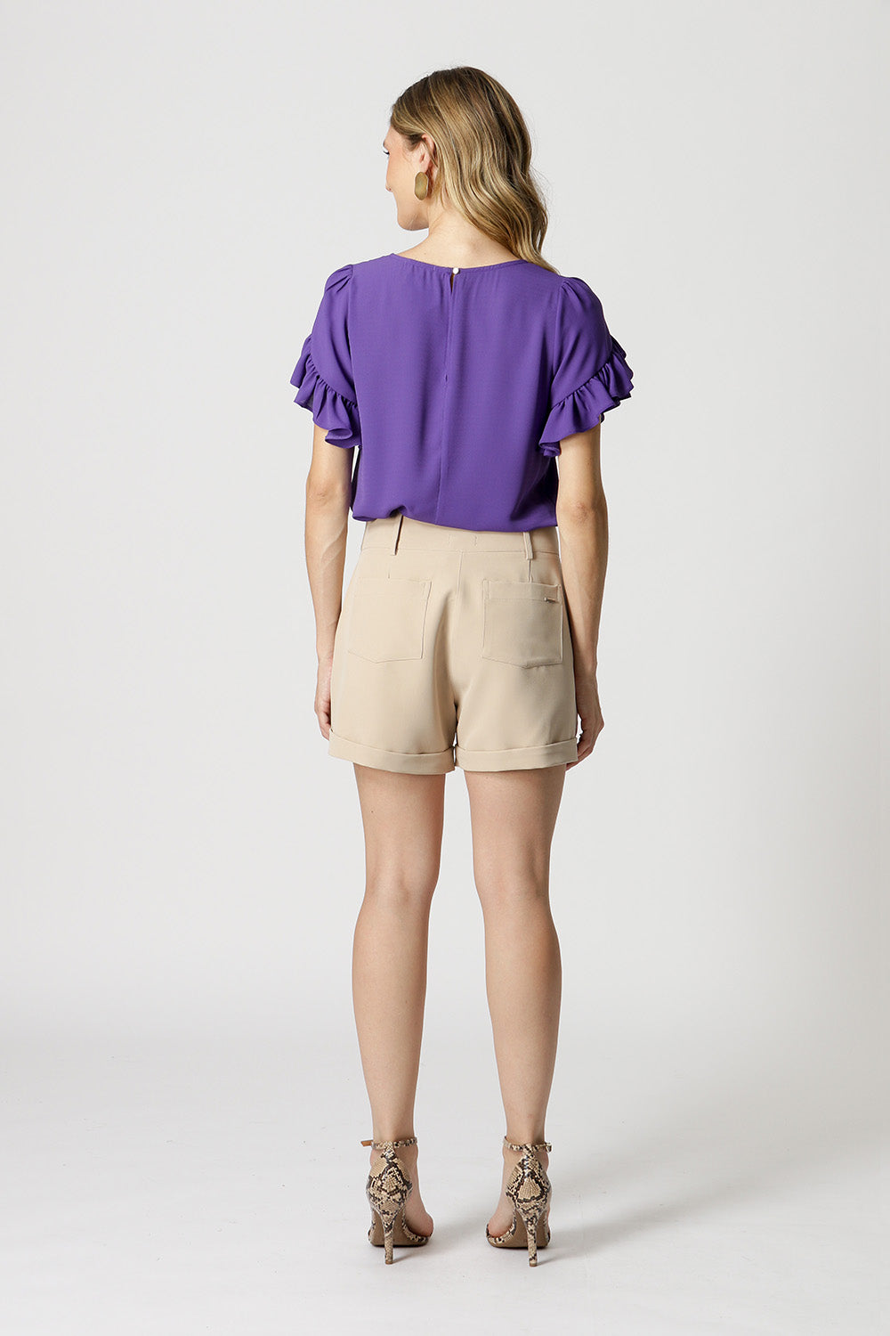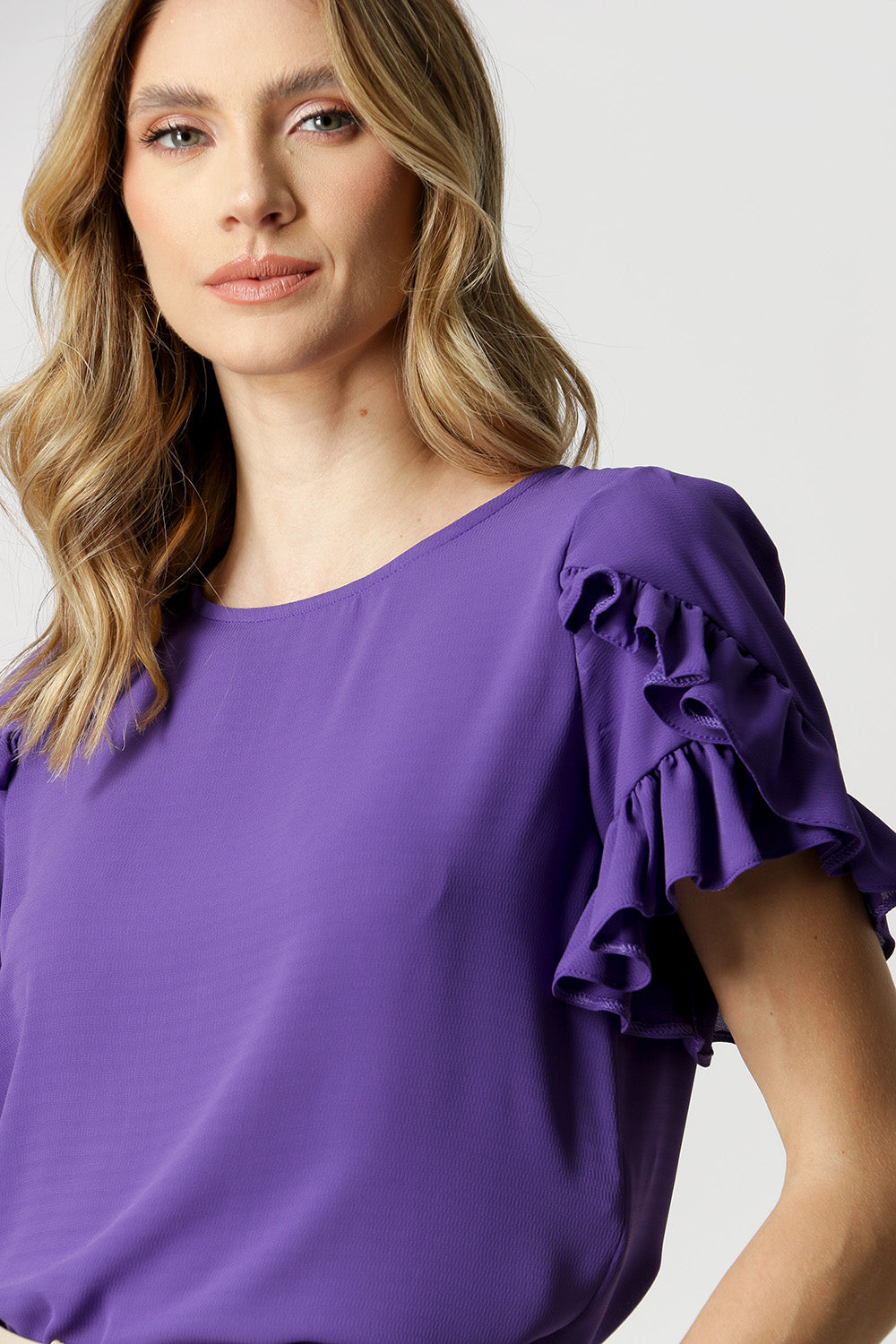 Blusa con volantes en las mangas, confeccionada en tejido fluido. Una pieza estupenda y cómoda para crear looks de trabajo con mucho encanto.