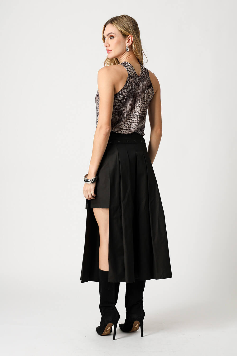 Confeccionada em tule estampado, a peça possui modelagem ajustada e busto torcido com alça central, que valoriza o decote e traz um toque moderno ao visual. Leve e versátil, é ideal para composições cheias de estilo.