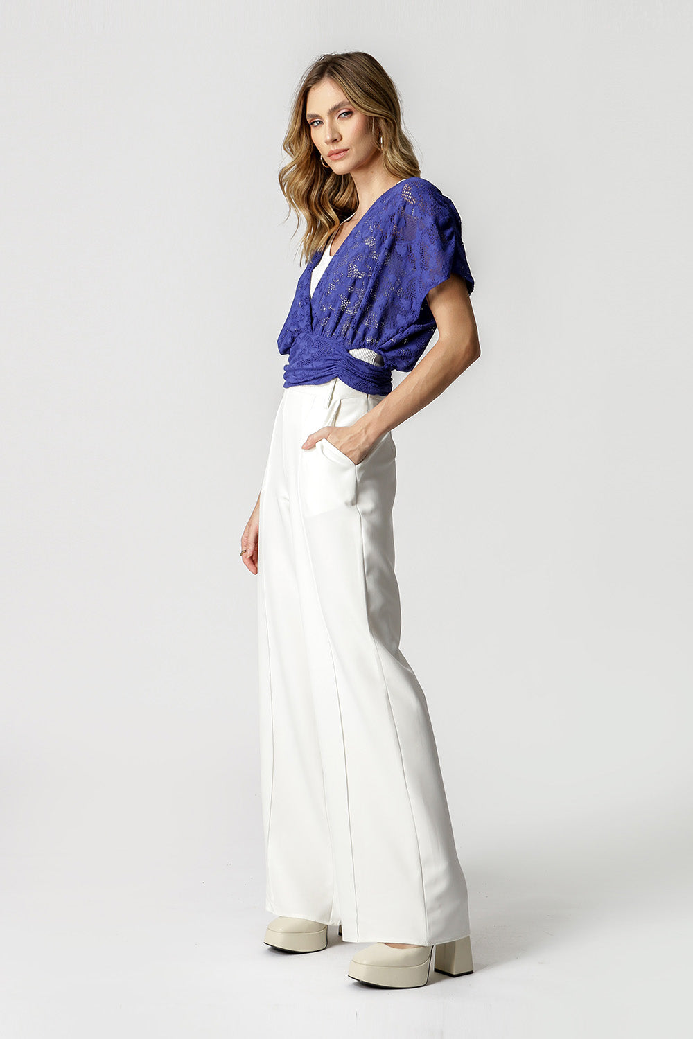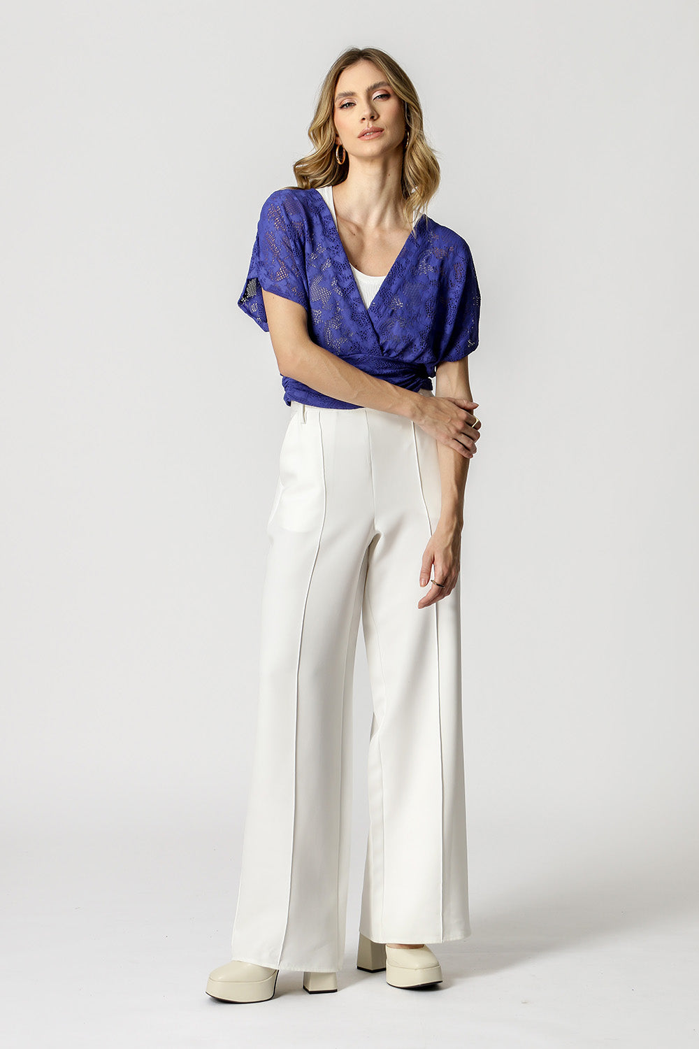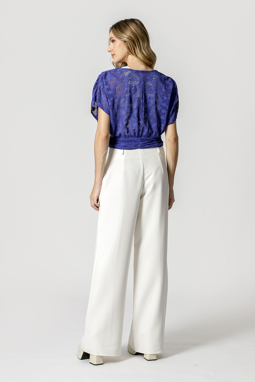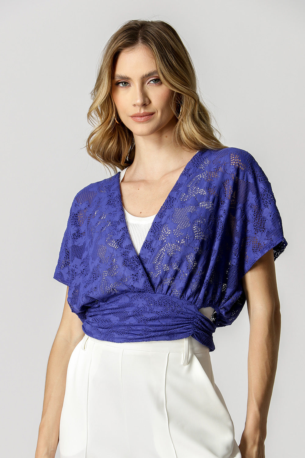 Blusa con escote cruzado y detalles elásticos en espalda y delantero. Una buena apuesta para un look casual.