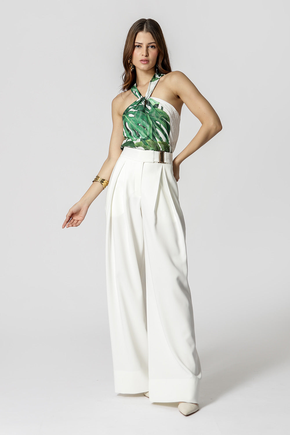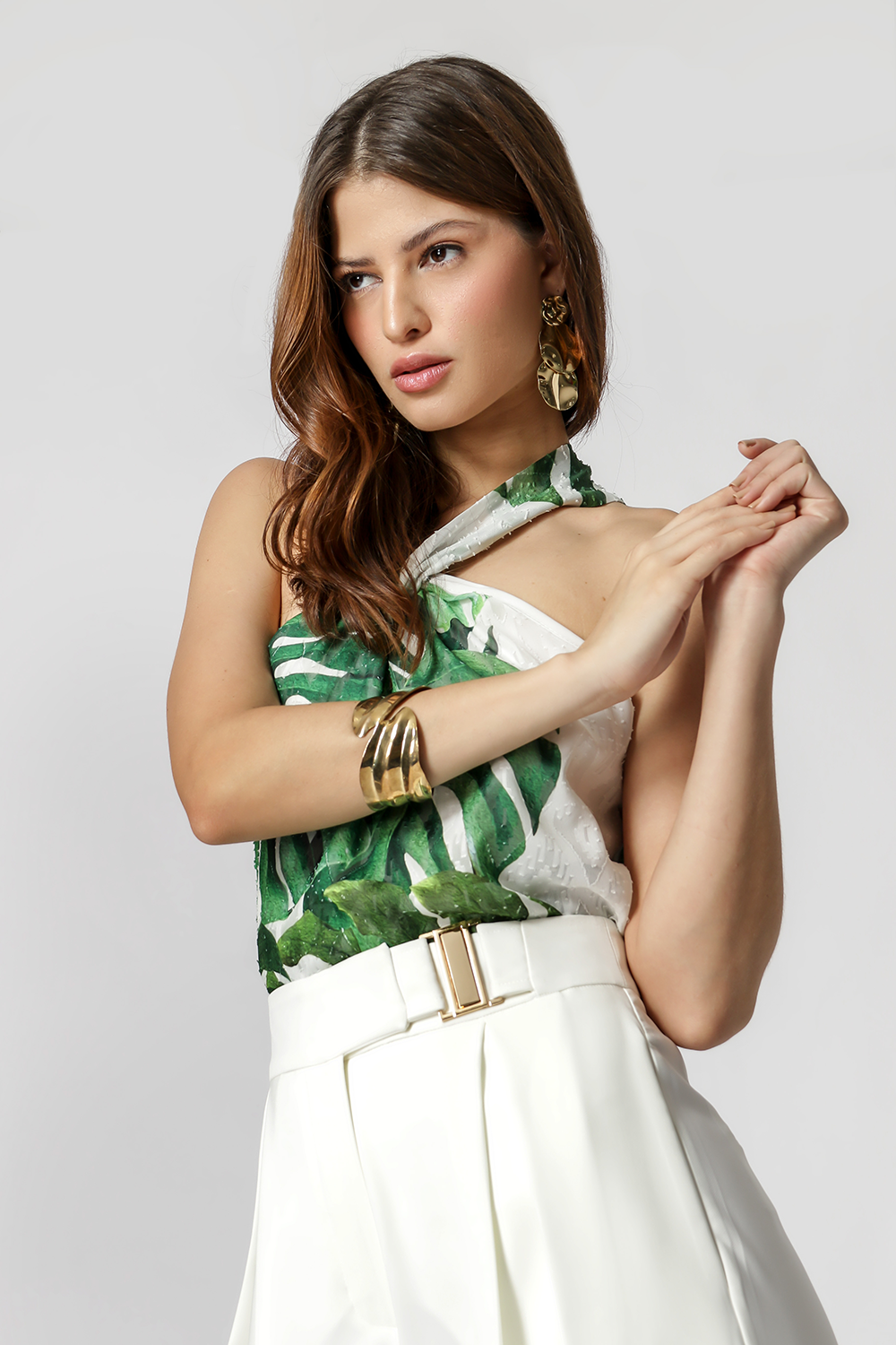 Blusa con escote torcido. Fabricado en tejido de gasa estampado. Un modelo perfecto para un ambiente casual.