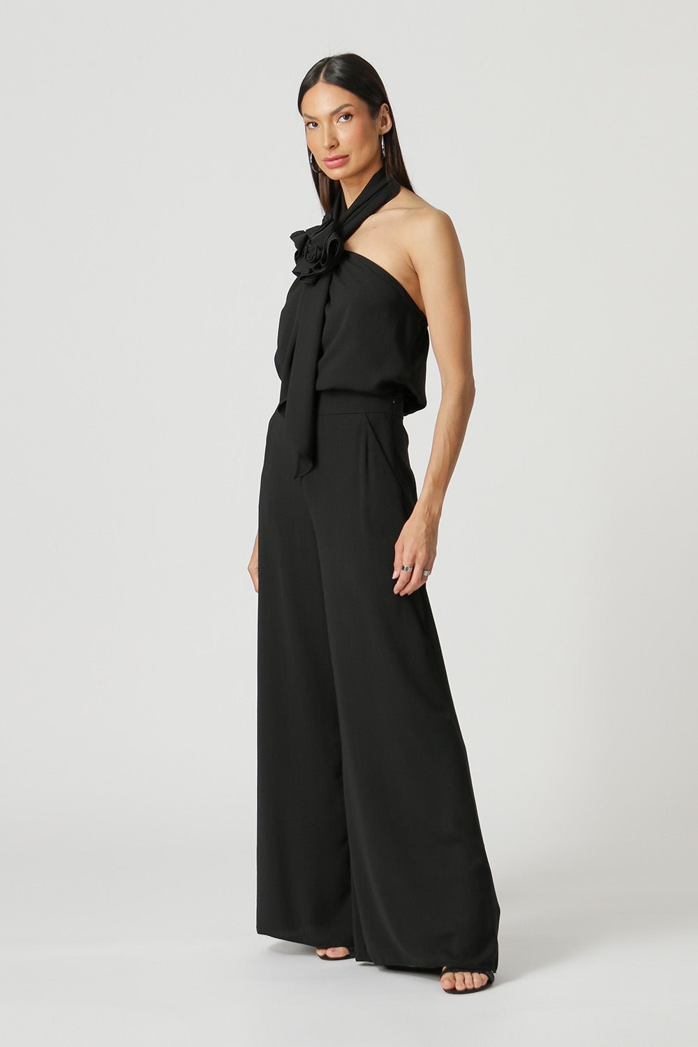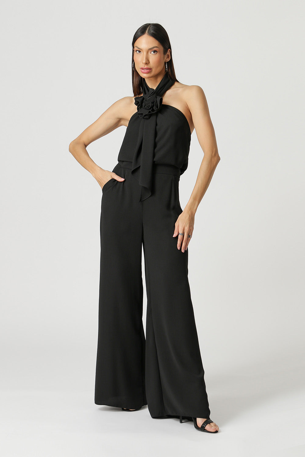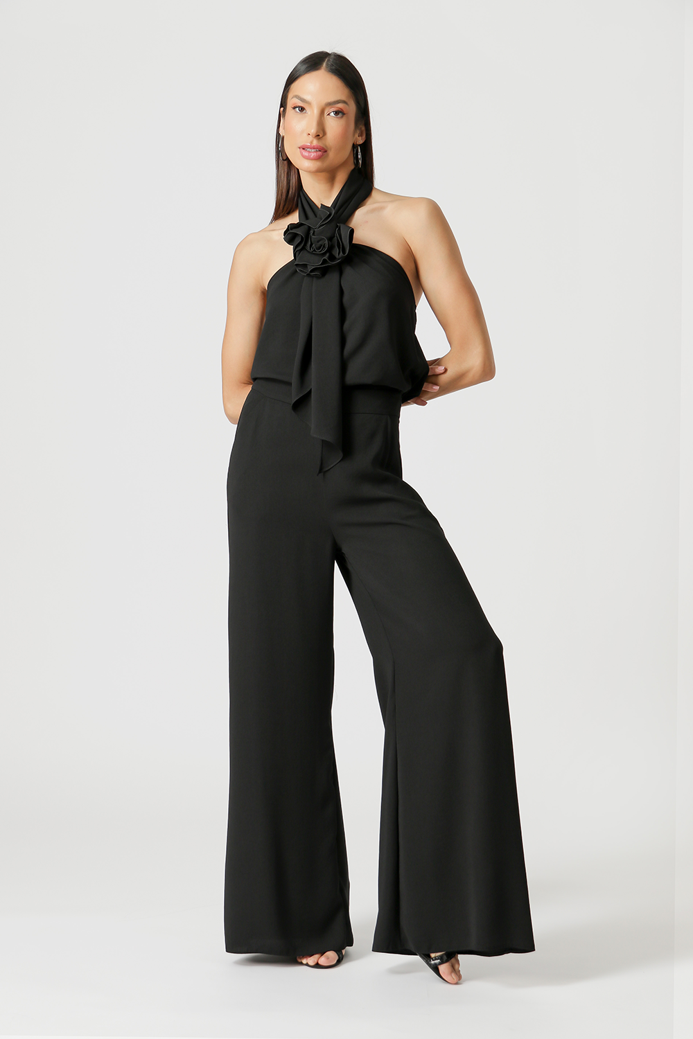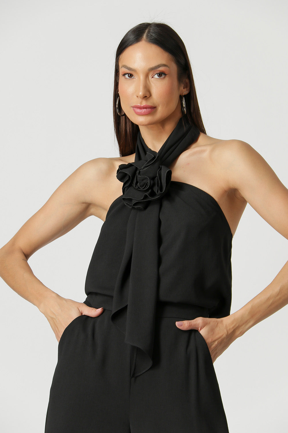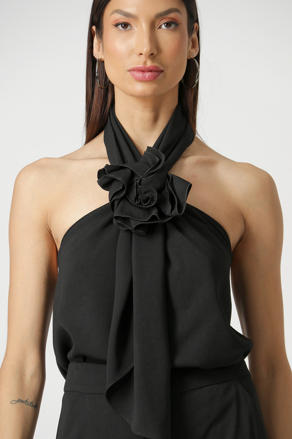 Blusa con detalle de aplique de flores confeccionada en la propia tela. Un detalle extraíble como un broche. Modelo con forma fluida. Pieza perfecta para crear un look casual.