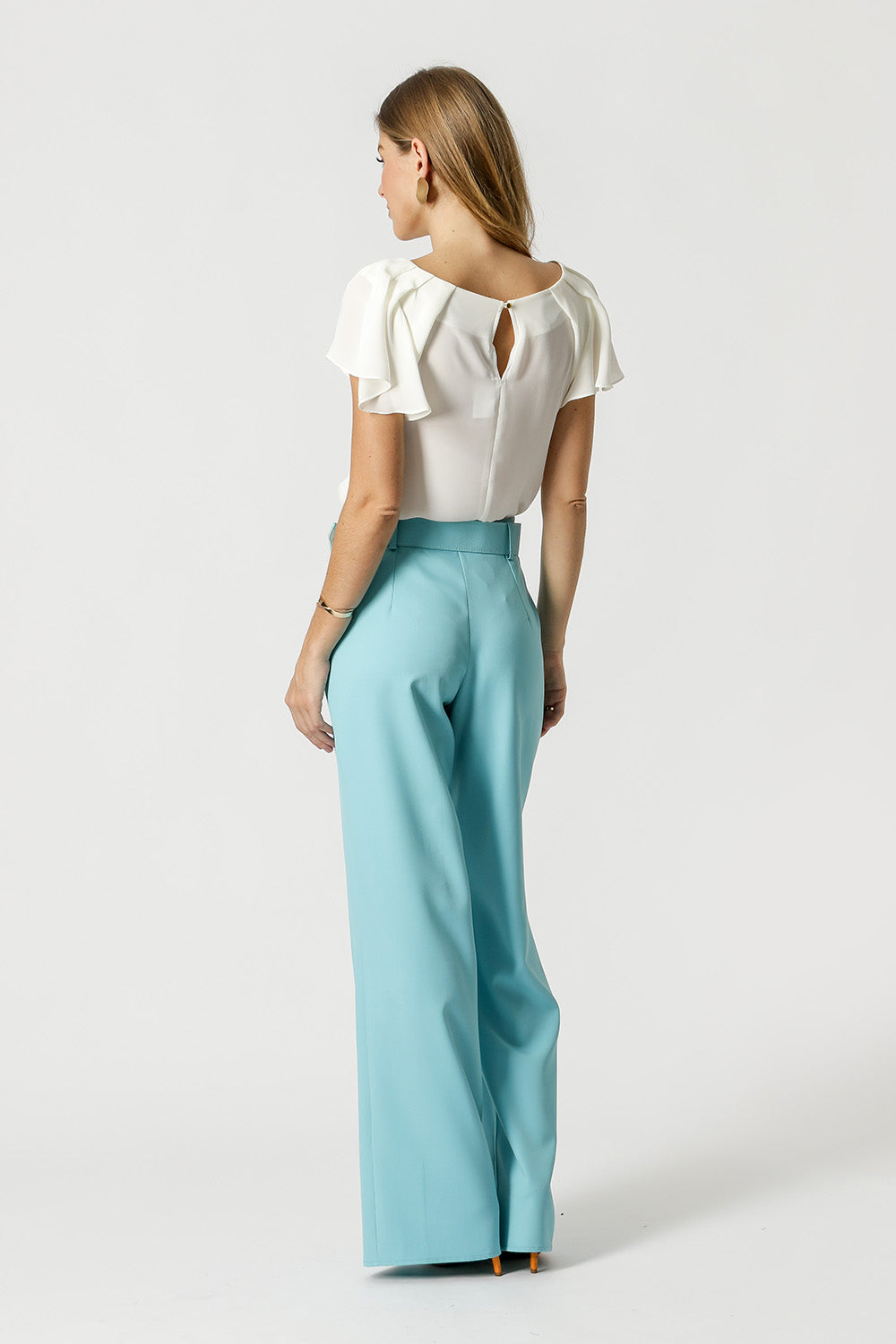 Blusa con detalle plisado en el hombro. Pieza en tejido crepe fluido. Una pieza delicada y encantadora para un look de trabajo.