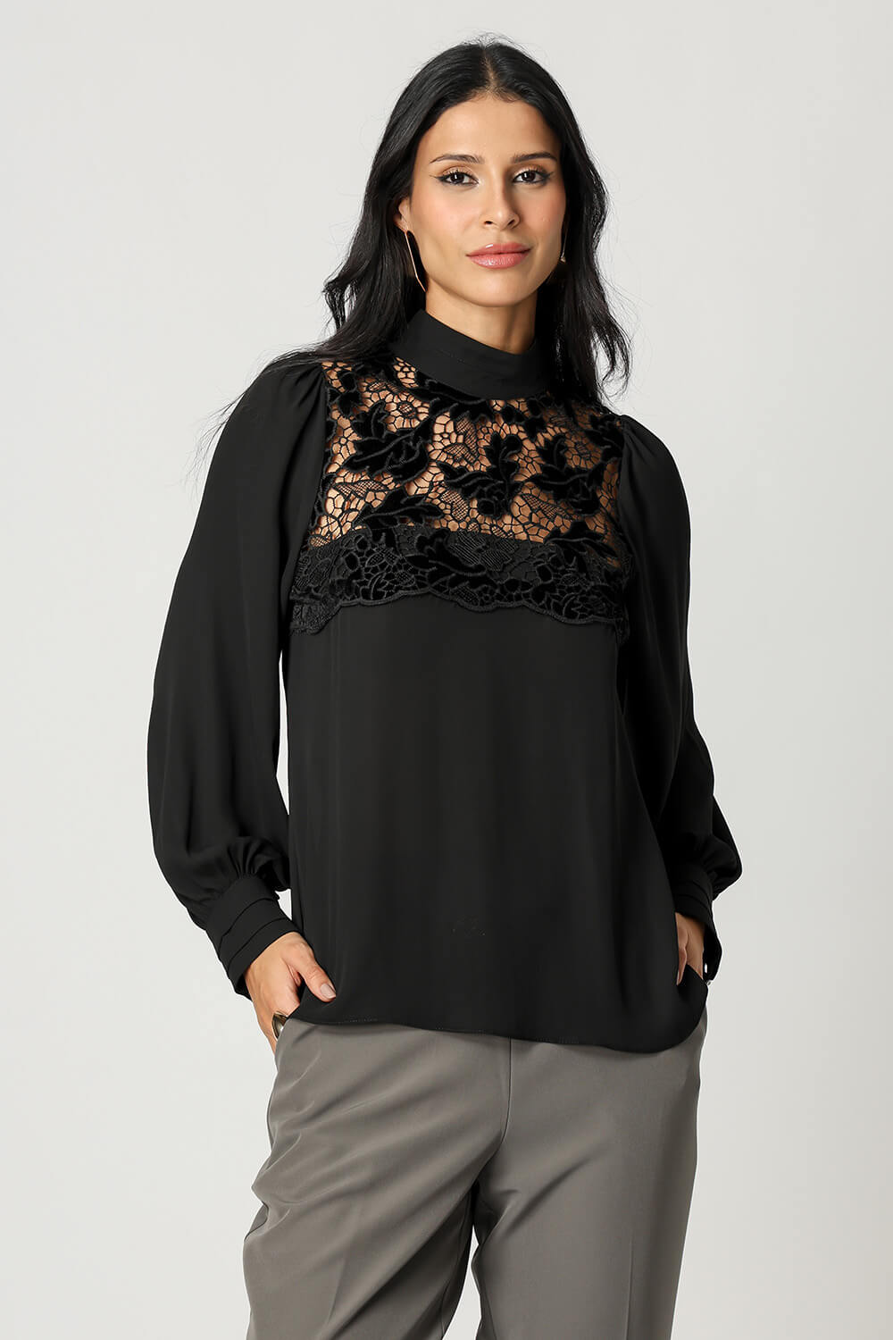 Blusa elegante y moderna, con detalles de guipur, un delicado bordado floral que aporta ligereza y feminidad. Perfecto para looks diarios o ocasiones especiales, combina sofisticación y comodidad en una sola pieza.